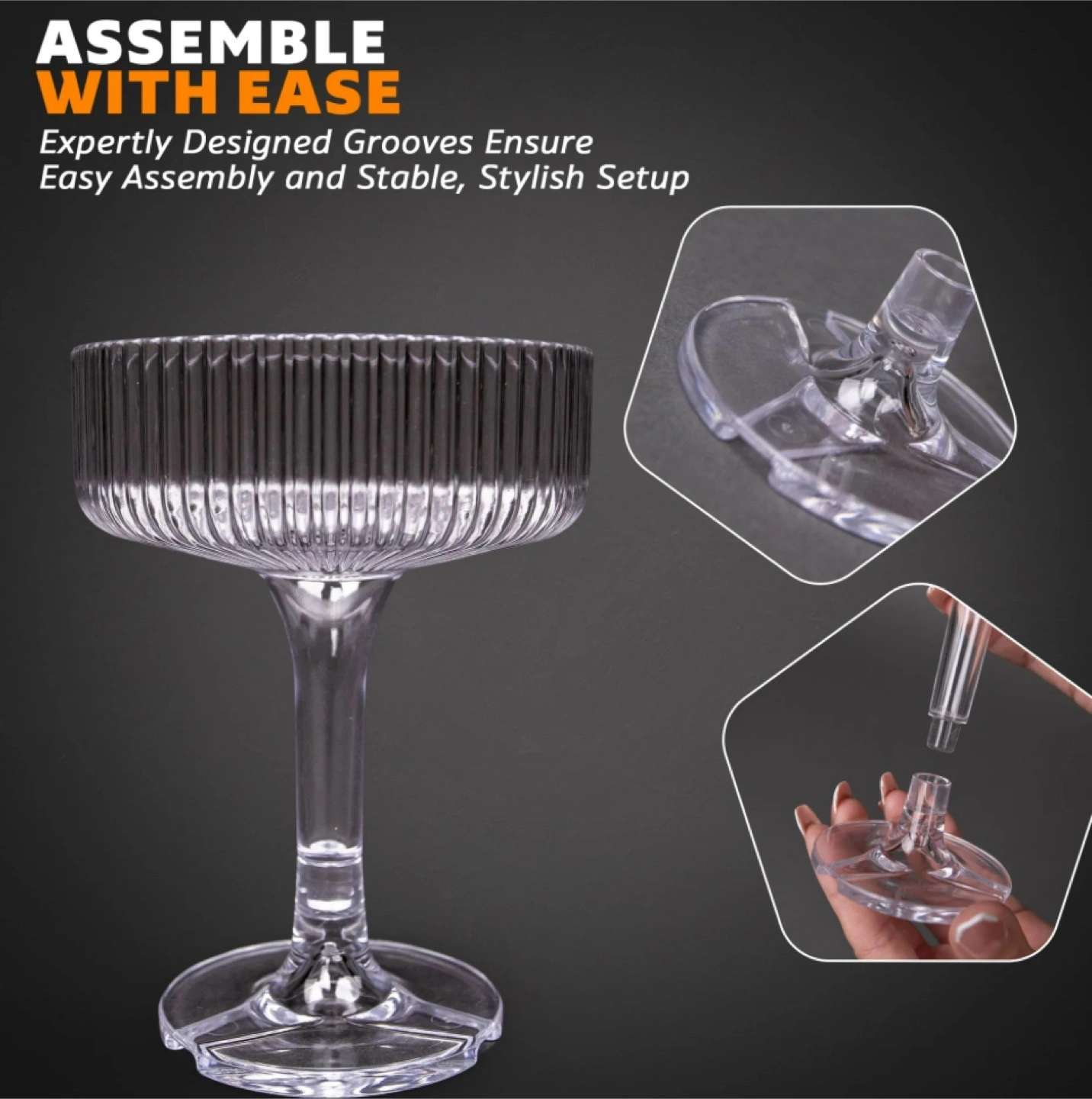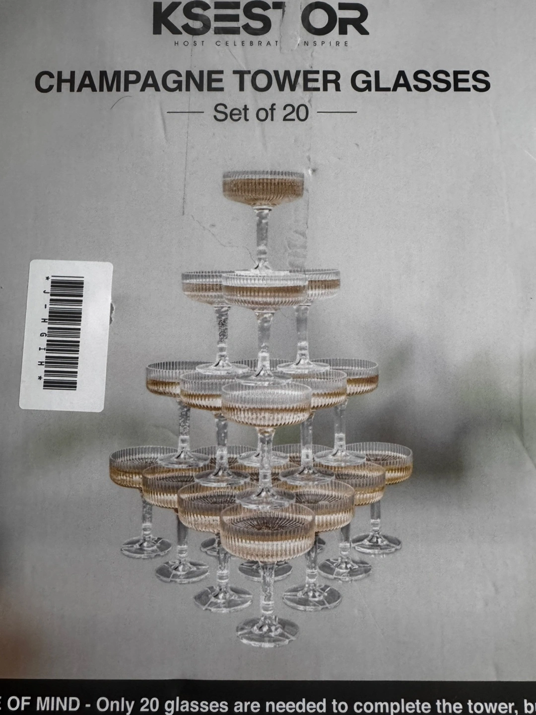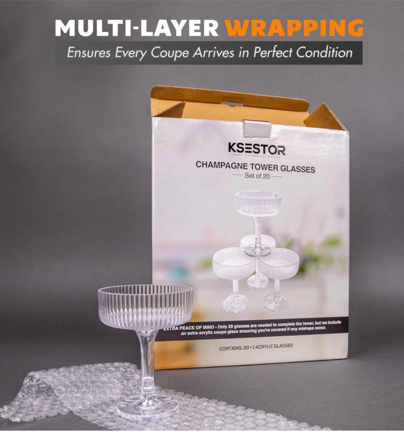 Acrylic Champagne Tower โ 19-Piece Set ๐ฅ Celebrate in style with this Art Deco champagne tower! Includes 19 reusable 7oz acrylic coupe glasses, perfect for weddings, parties, or any special occasion. Sturdy, stackable, and easy to clean โ ideal for champagne, martinis, or desserts. ๐ฆ Brand new, safely packaged.