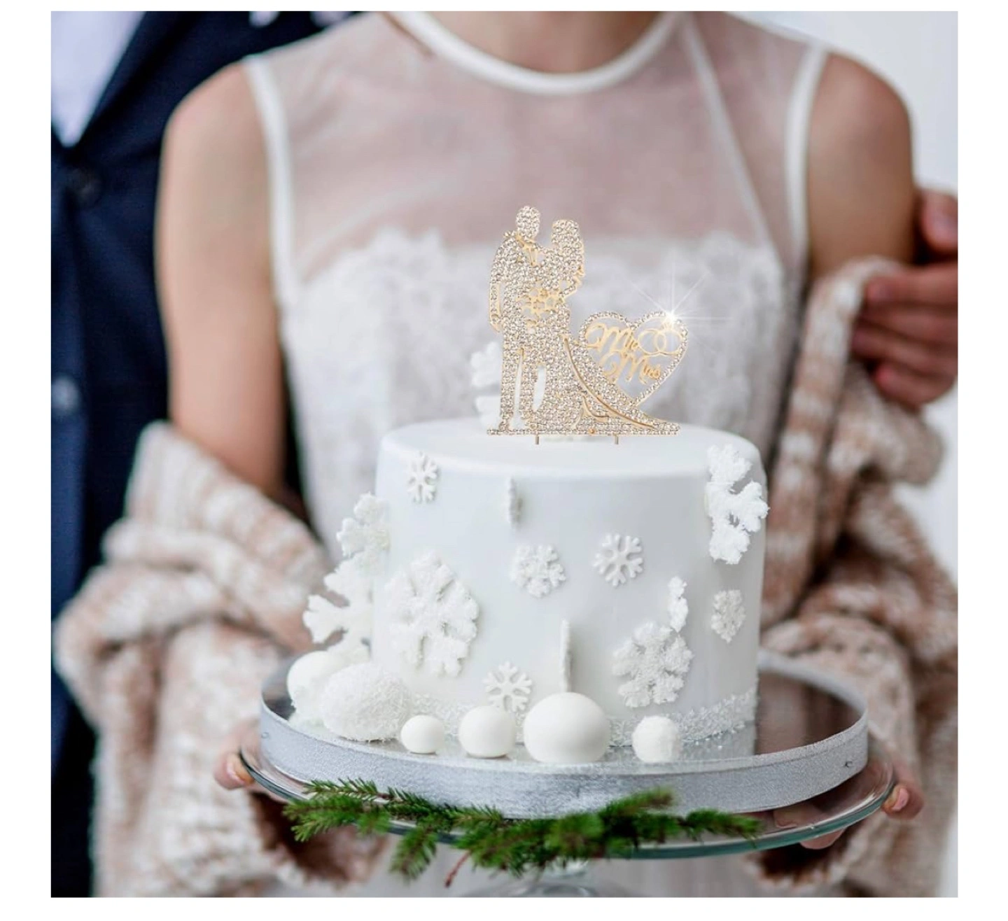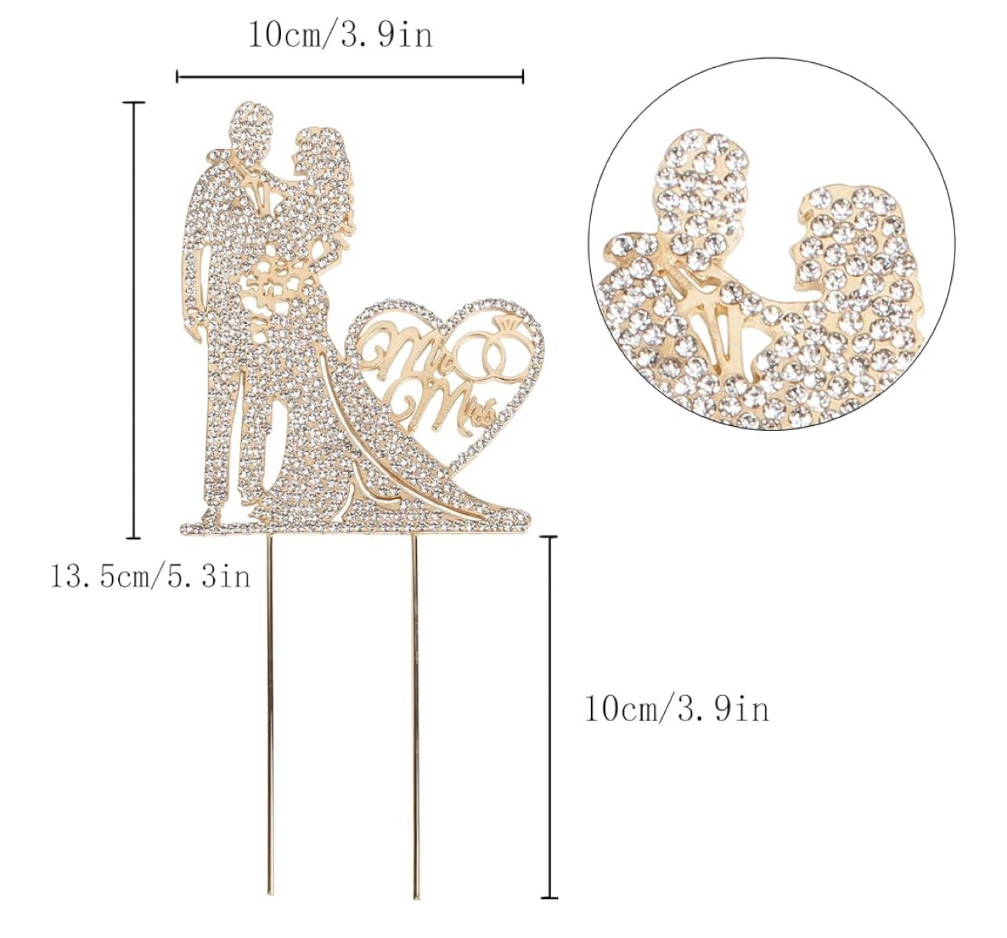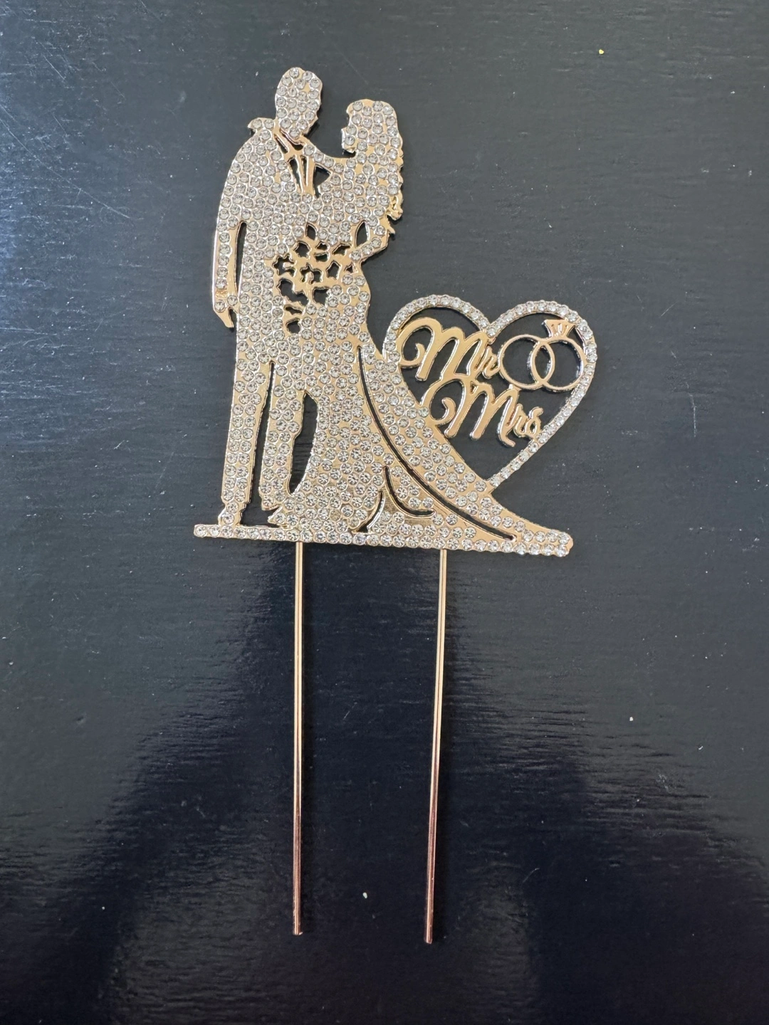 *CASH Only* Brand New Featuring a bride and groom gold color metal cake topper design adorned with rhinestones, it's the perfect finishing touch for your wedding cake. [Check Out My Other Listings]