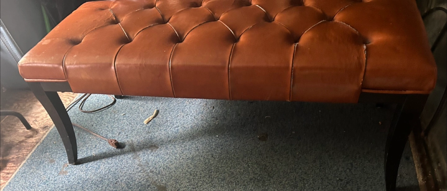 Selling a brown tufted ottoman bench. It's a stylish piece that would look great in any living room or bedroom. It is a great size and color.