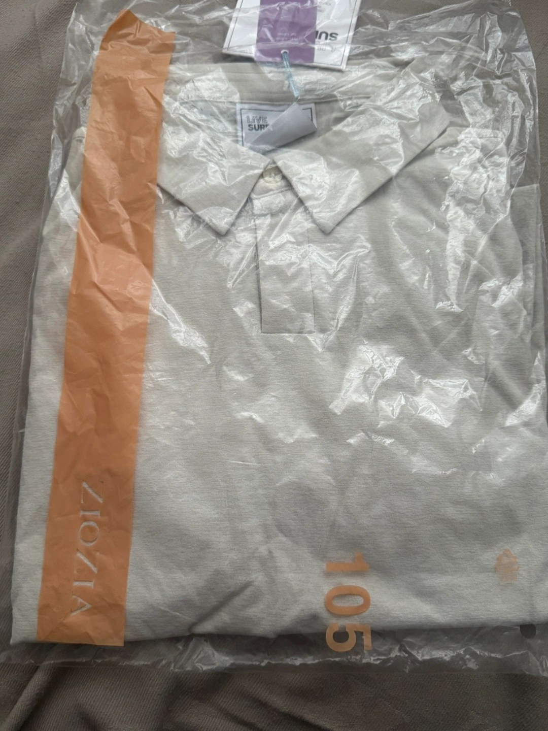 Selling a ZIOZIA polo shirt in beige, size 105 (which is like a large). It's in new condition and still in its original packaging. This polo has a classic and clean look, perfect for everyday wear!