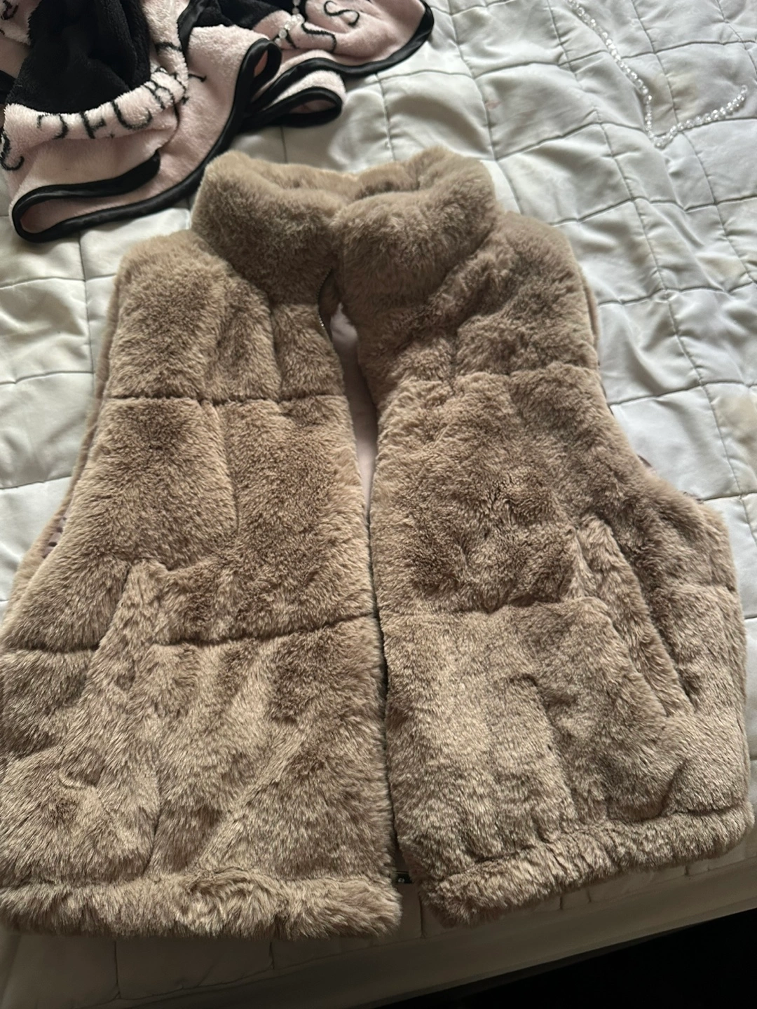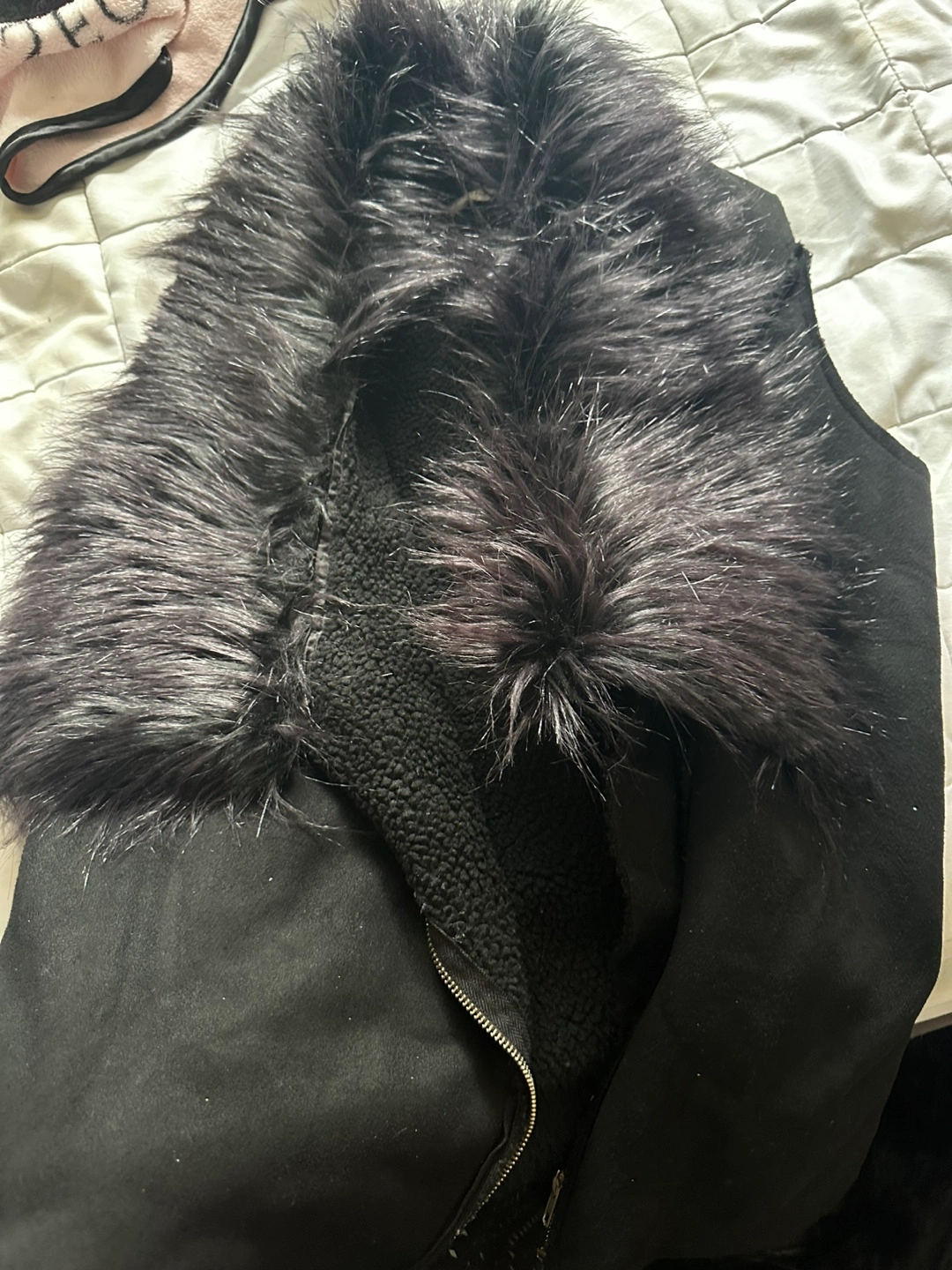 83Selling a black fur vest. The fur is super soft and the vest is very stylish. Perfect for layering during the cooler months