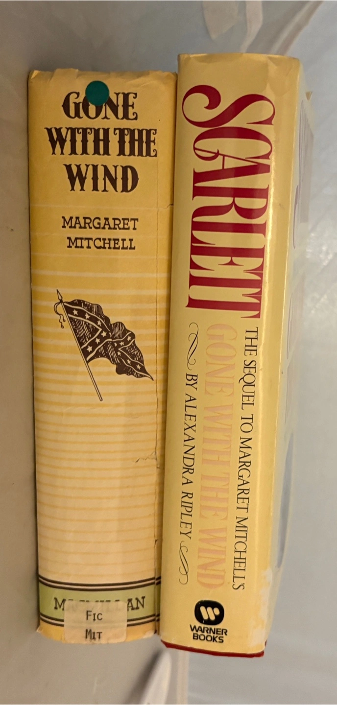 Selling two classic books: Gone With the Wind by Margaret Mitchell and Scarlett, the sequel by Alexandra Ripley. Both are hardcover editions. Pick up is in Burlington.