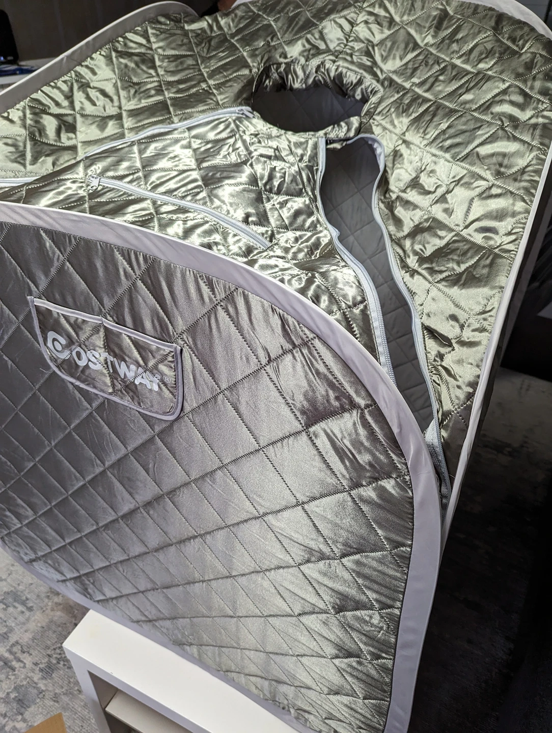 1-Person Portable 2L Steam Sauna Spa Tent Chair Grey open box more details msg pleas. tested plugs and work good