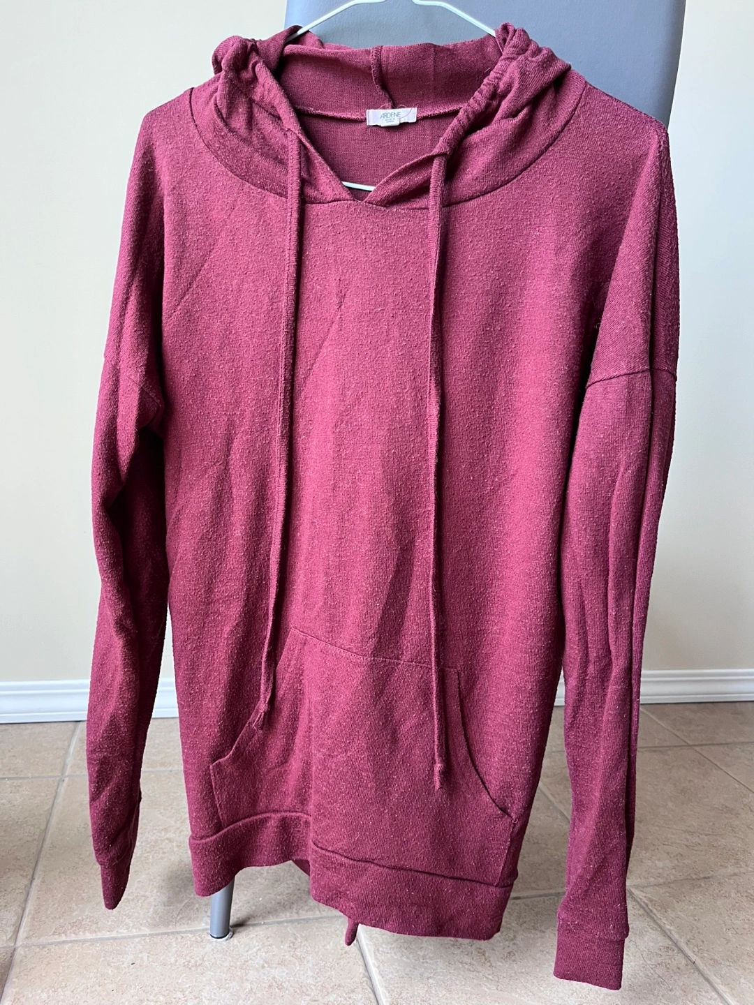 Selling a few hoodies and a crewneck! There's a striped hoodie(L), a plain black crewneck(S), and a burgundy hoodie(L). They are in OKAY condition and ready for a new home $8 each •cash only