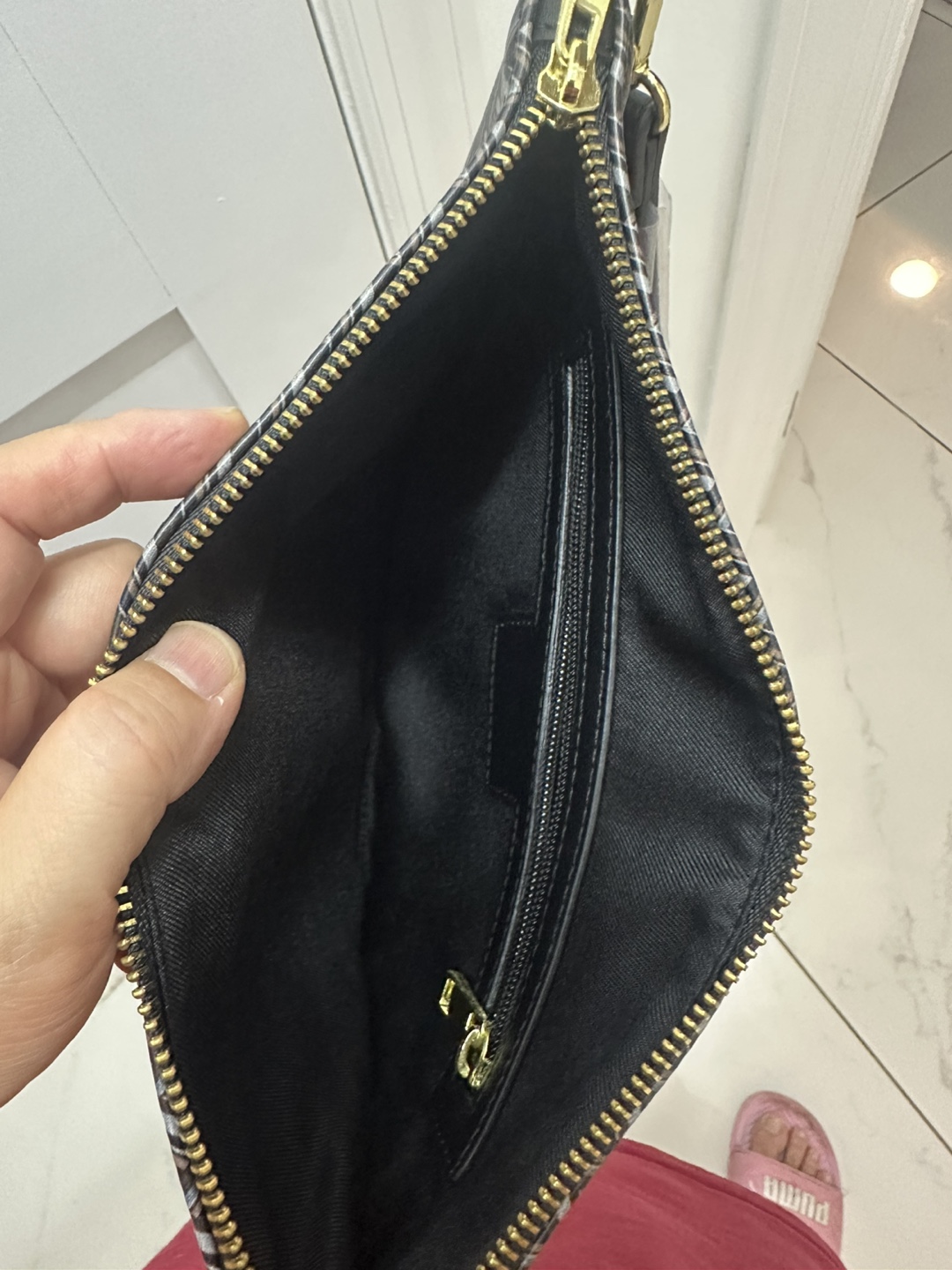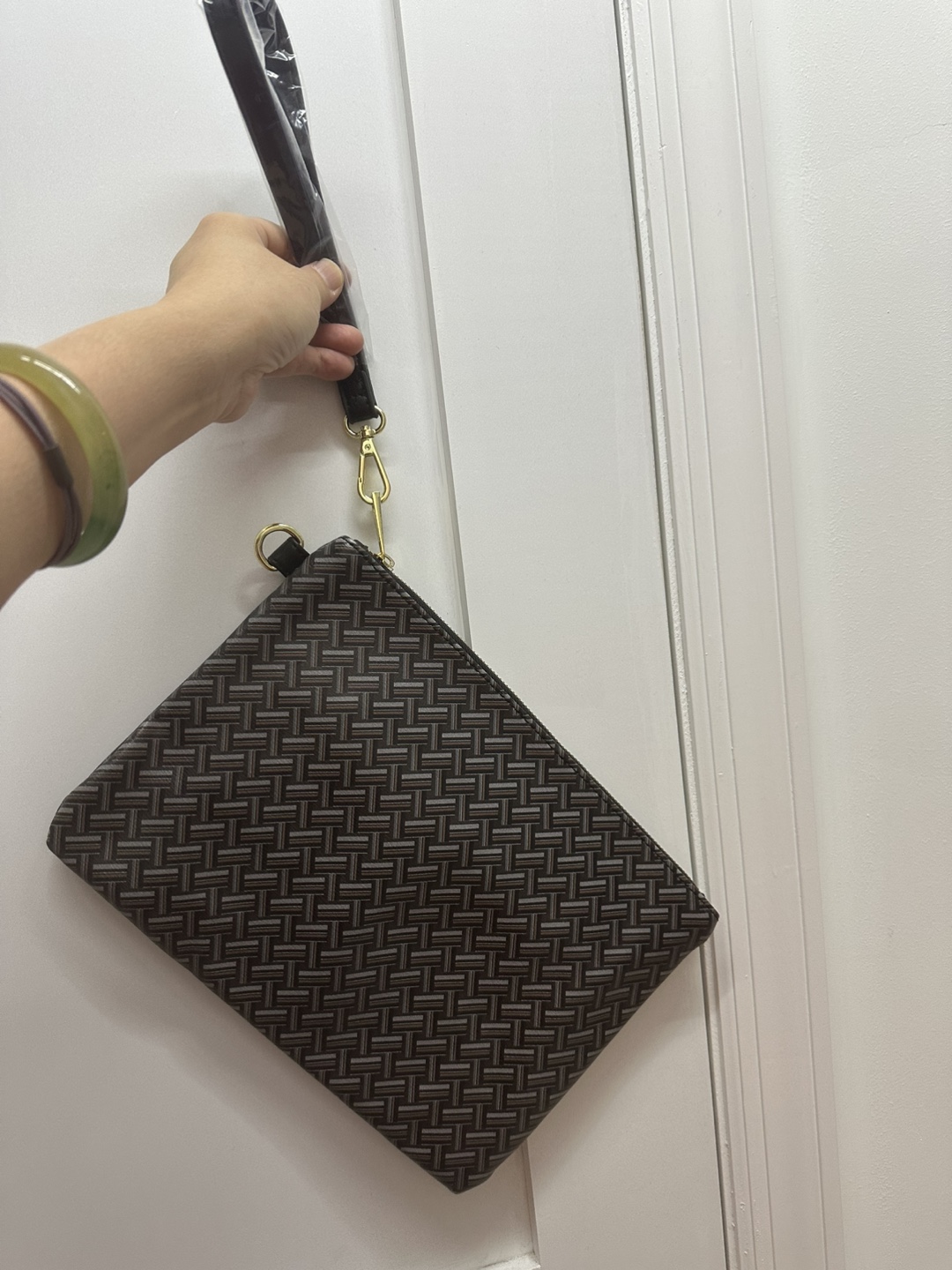 I'm selling a wristlet clutch. It has a woven pattern and gold-tone hardware. Perfect for carrying your essentials! New without tag. Clean up my closet.