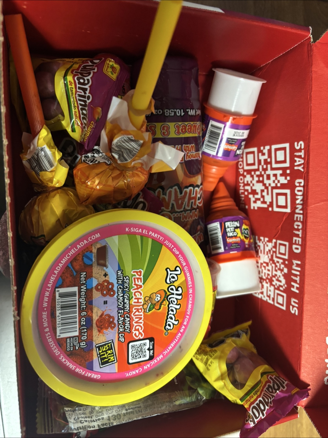 Selling a Chamoy Mystery Box filled with spicy, salty, and sweet treats! It's a mouth-watering and tastebud-tantalizing experience. Perfect for snack lovers who enjoy a bit of adventure with their candy