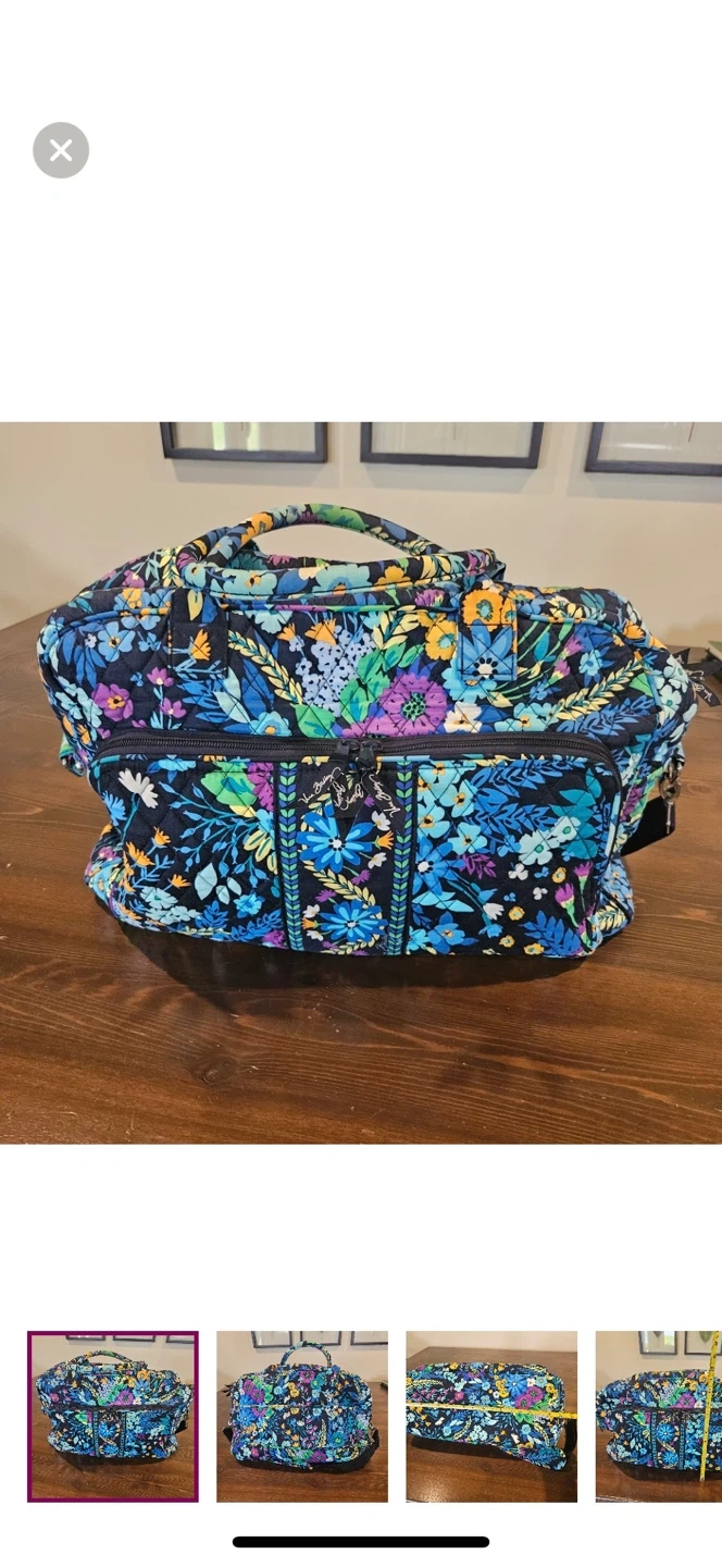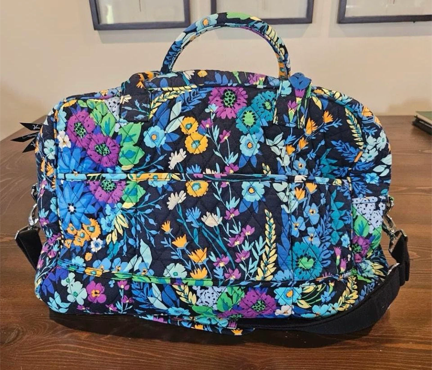Here's a lovely Vera Bradley travel bag with a colourful floral pattern! It's in great shape and ready for your next adventure. The bag features a quilted design and has both handles and a shoulder strap for easy carrying midnight blues retired print weekender bag
