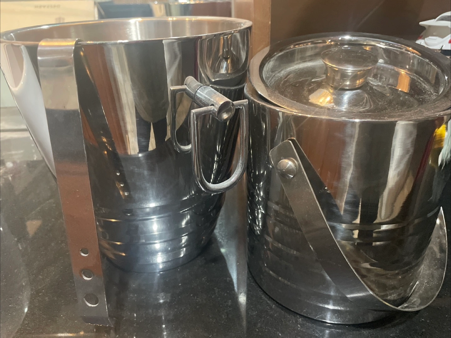 Here's a stainless steel ice bucket, perfect for keeping your drinks cool. It comes with a lid to help maintain the temperature. Great for parties or just keeping your beverages chilled on a hot day