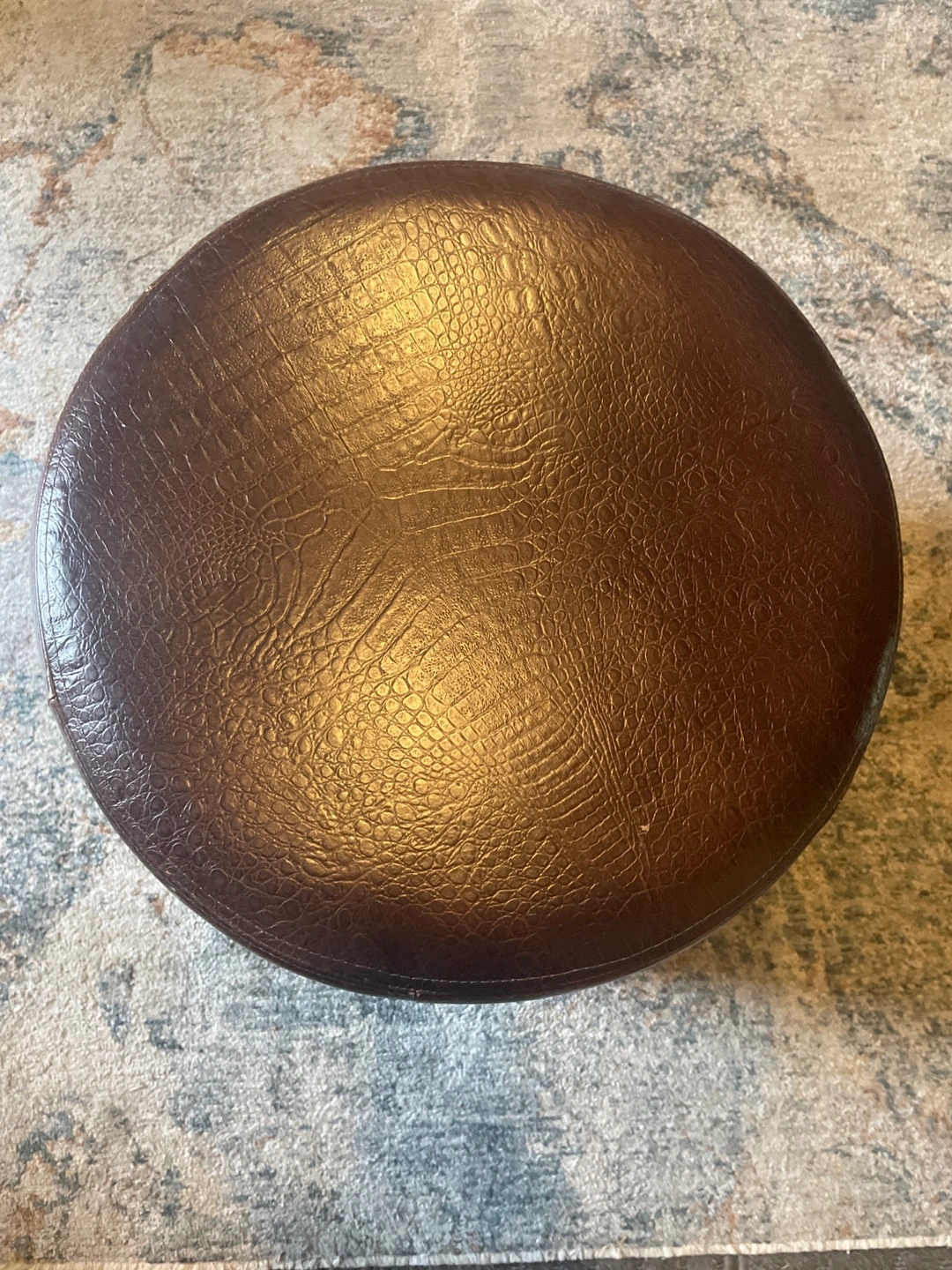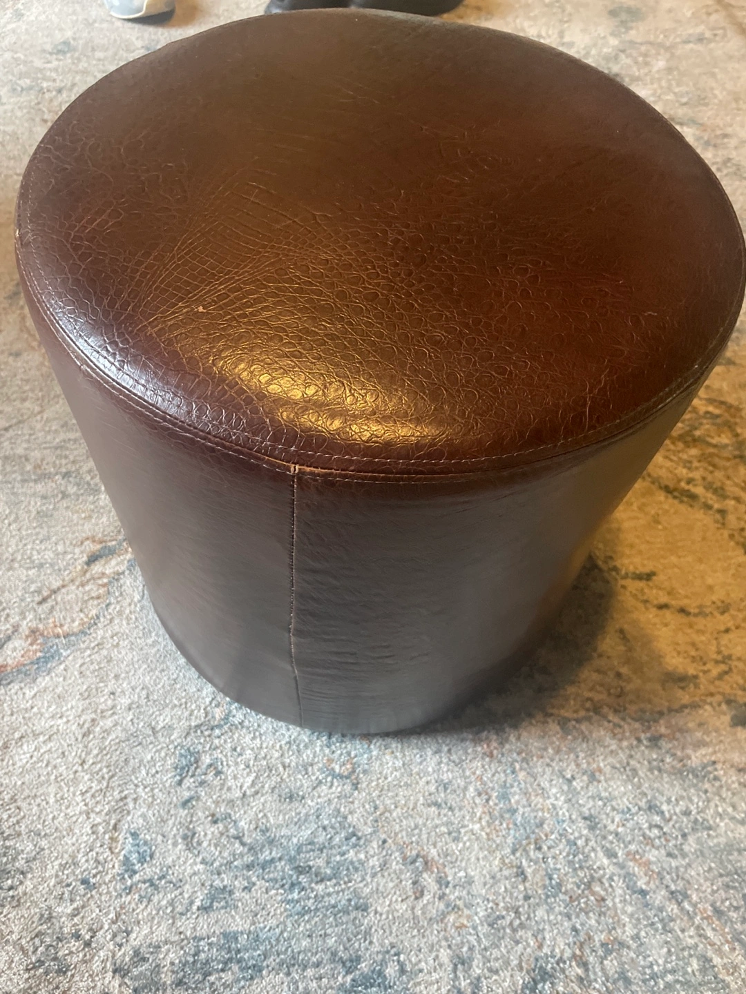 Selling a brown, round ottoman footstool. It's in great condition and would be a nice addition to any living room or bedroom!