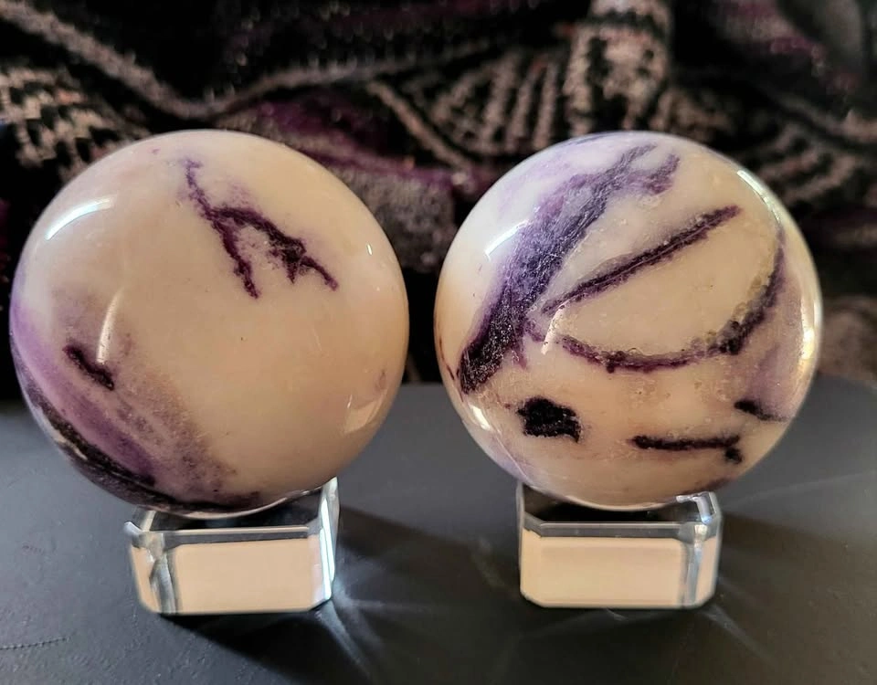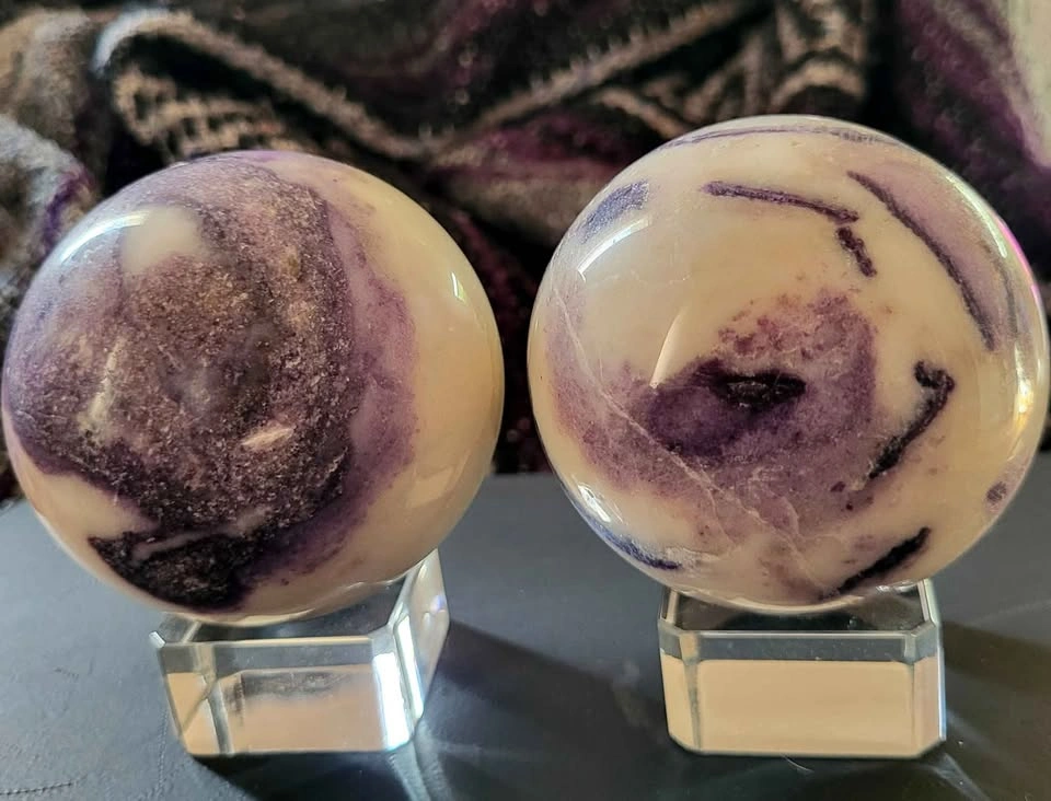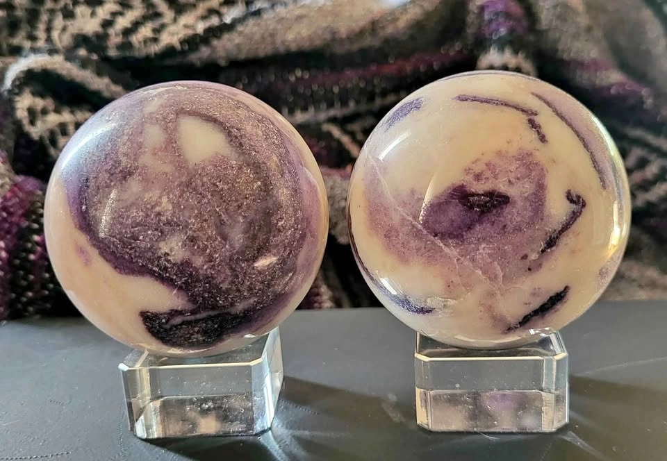 Tiffany stone spheres, these are 9 inches and 9.5 inches in diameter. Each is sold separately at $65 per sphere. Only 2 available.