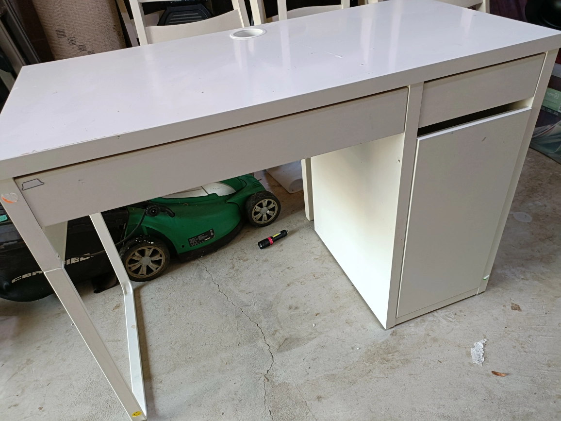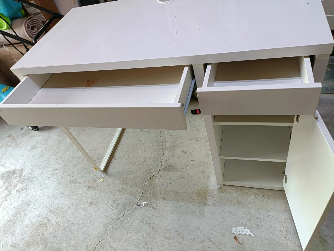 Selling a white IKEA desk,. It has a drawer and a little cabinet area for storage. There are some signs of kids scratch , but still lots of life left in it! quick sale before the school season starts. price will increase
