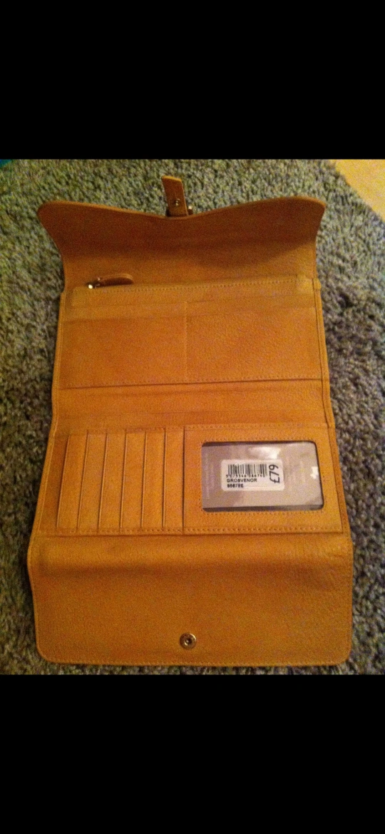 Selling a brand new Radley London Grosvenor large matinee wallet color is tan. H10 x W19 x D3cm. Made from luxury textured leather and a buckle detail on the front. The popper button opens to reveal room for 10 cards, a clear window for ID and a zipped compartment ideal for loose change. This was purchased in the UK and is a very popular brand over there.