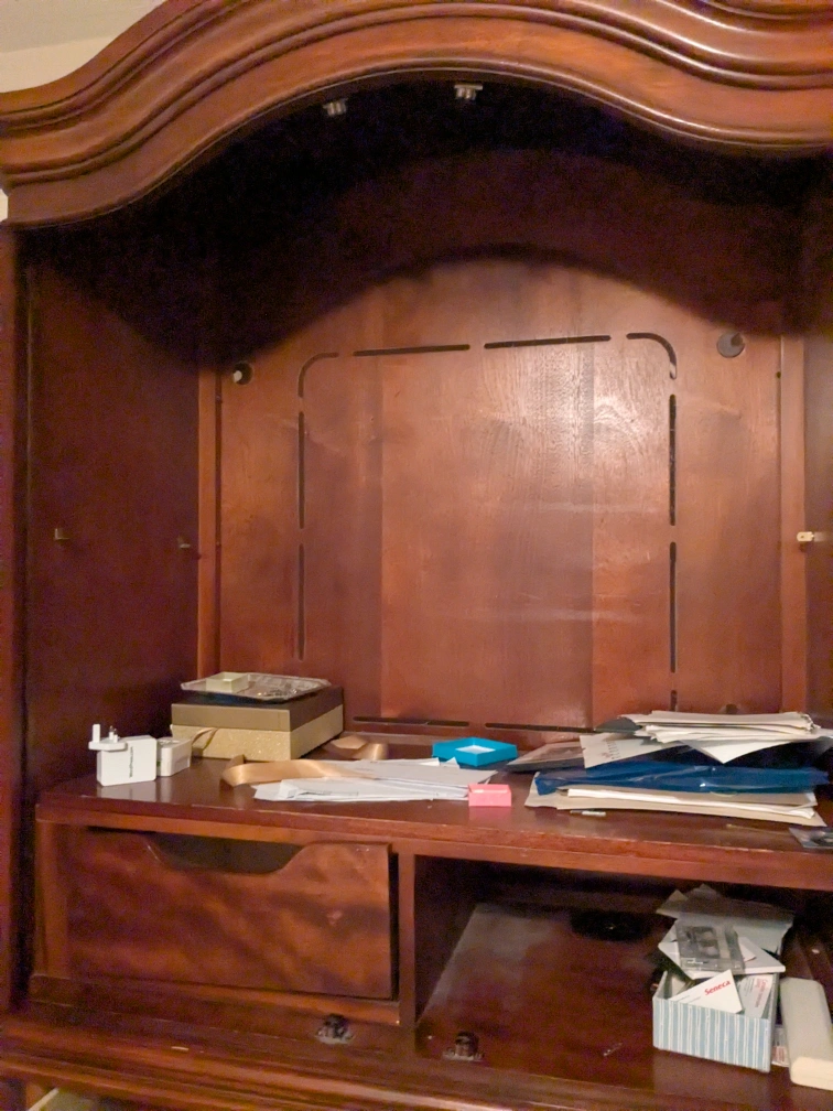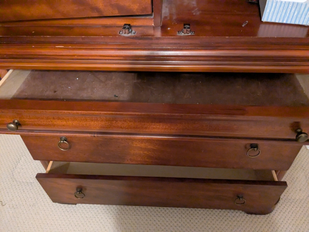Selling a wooden armoire with a classic design. It has two doors on top and two drawers at the bottom, offering lots of storage space. It would be a great addition to any bedroom! Great for storing personal items, work.stuff or your TV! You will need to rent a van to pick this up. Bring two friends to help.