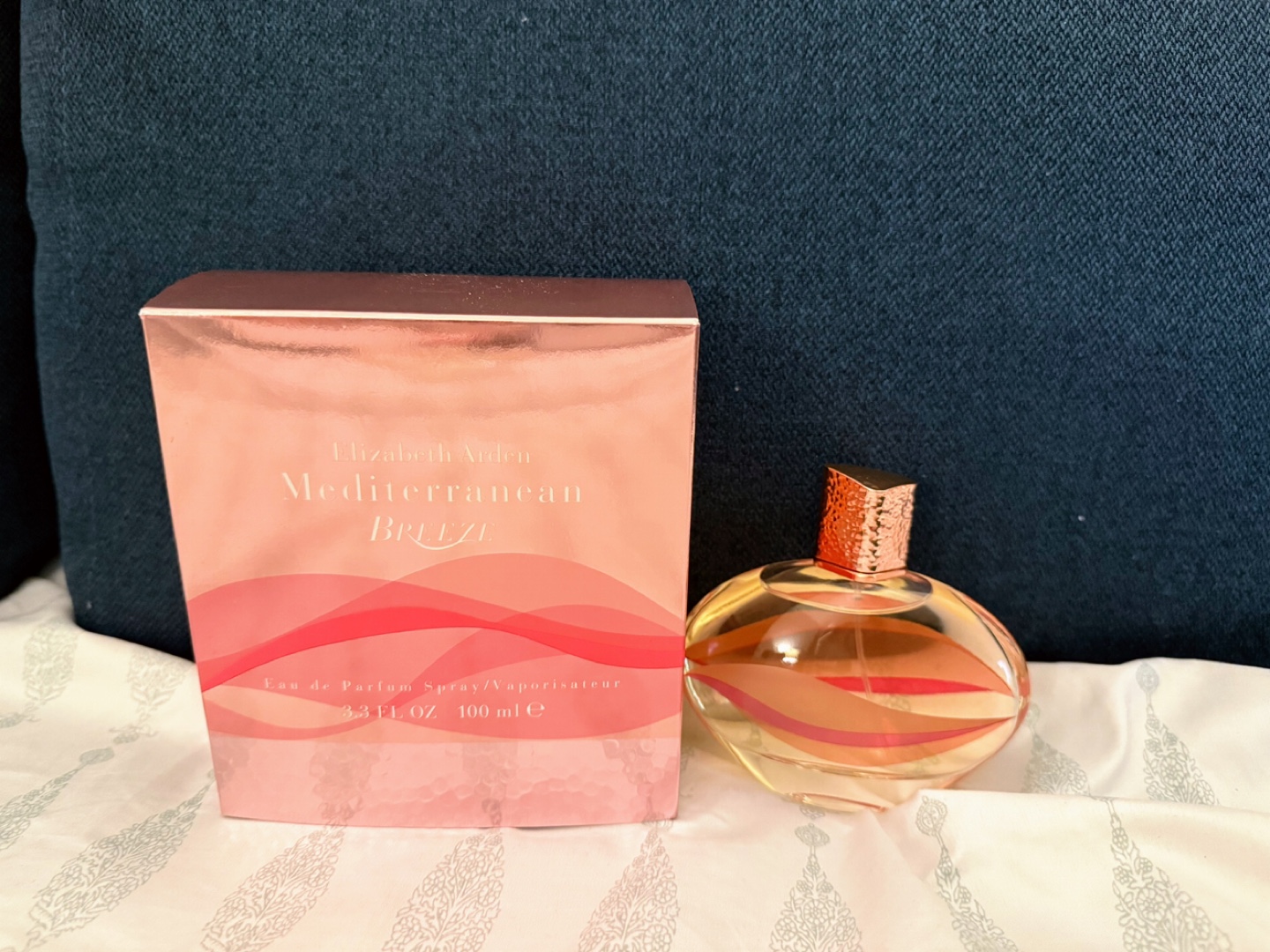 Selling a new bottle of Elizabeth Arden Mediterranean Breeze Eau de Parfum Spray. It's a 3.3 fl oz (100 mL) bottle.