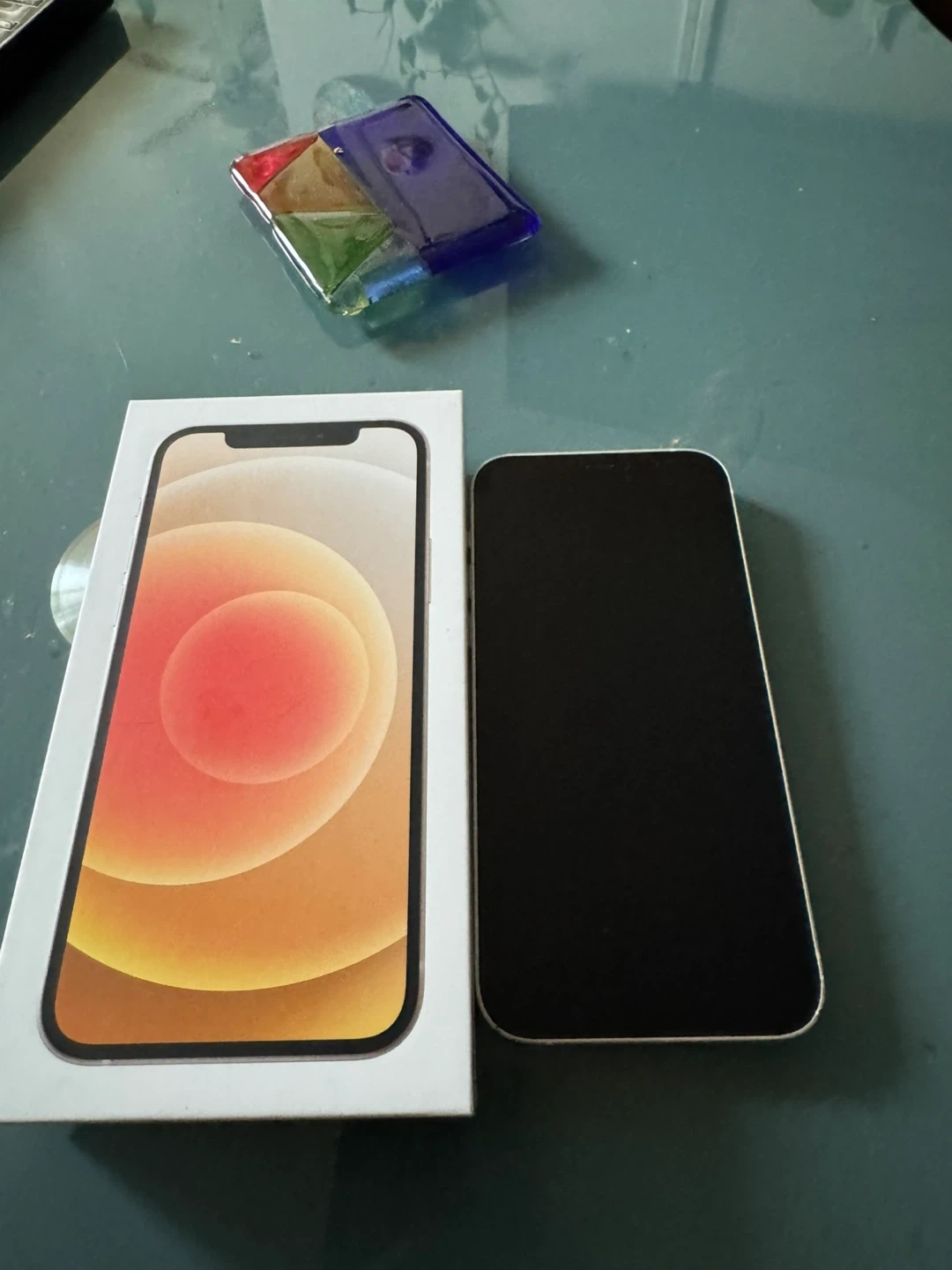23Selling a white Apple iPhone 12 with 64GB of storage. It comes with the original box. There are some signs of wear on the corner of the phone, as shown in the pictures, but otherwise it's in good condition!