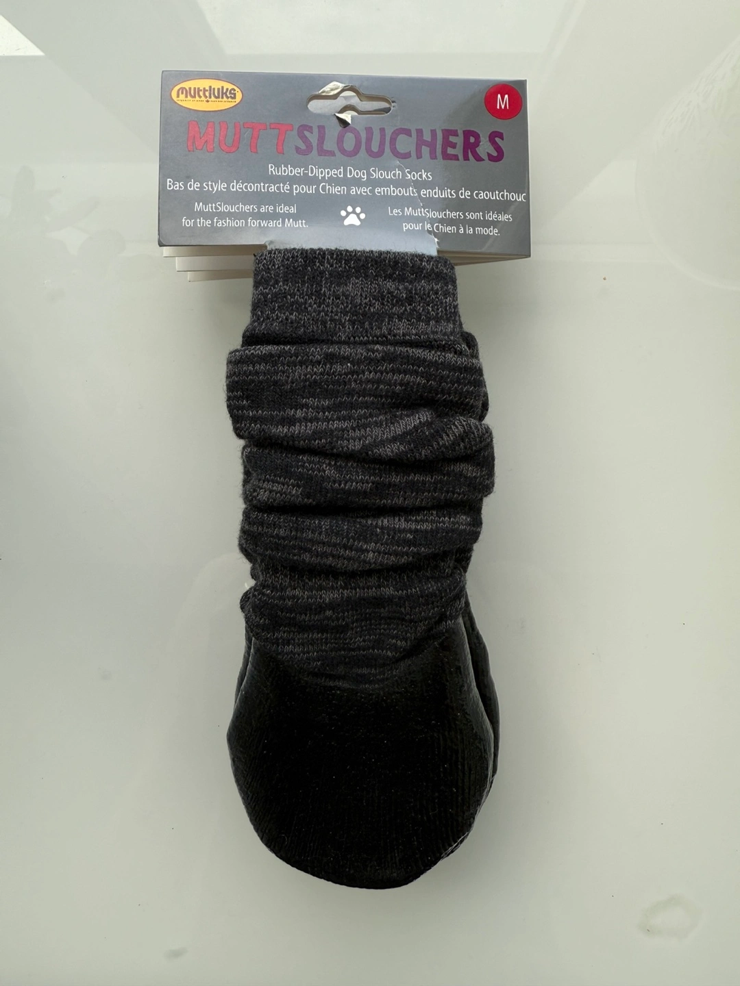 Keep your furry friend stylish and comfy with these Muttluks Muttslouchers! These rubber-dipped dog slouch socks are perfect for the fashion-forward mutt. They are size M.