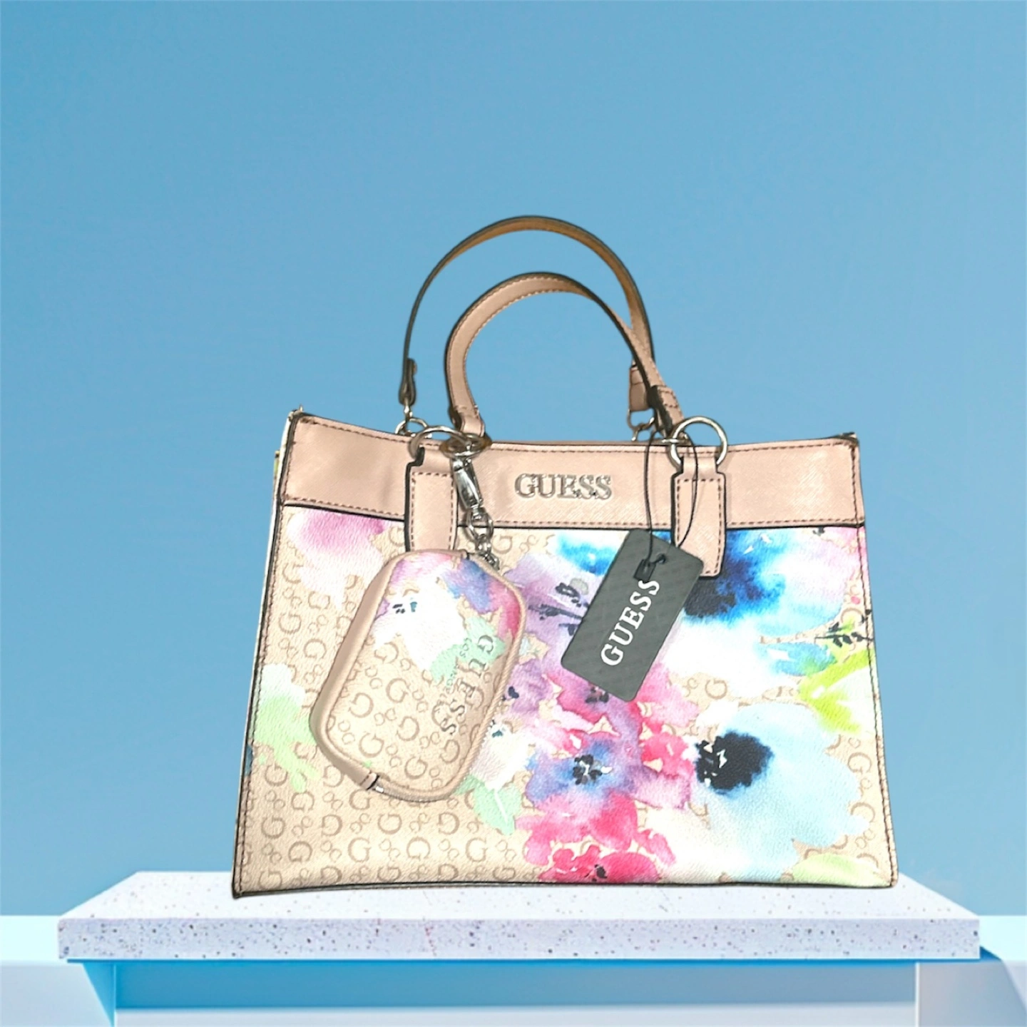 Selling a cute Guess tote bag with a floral print! It comes with a matching small pouch. Perfect for adding a pop of color to your outfit!
