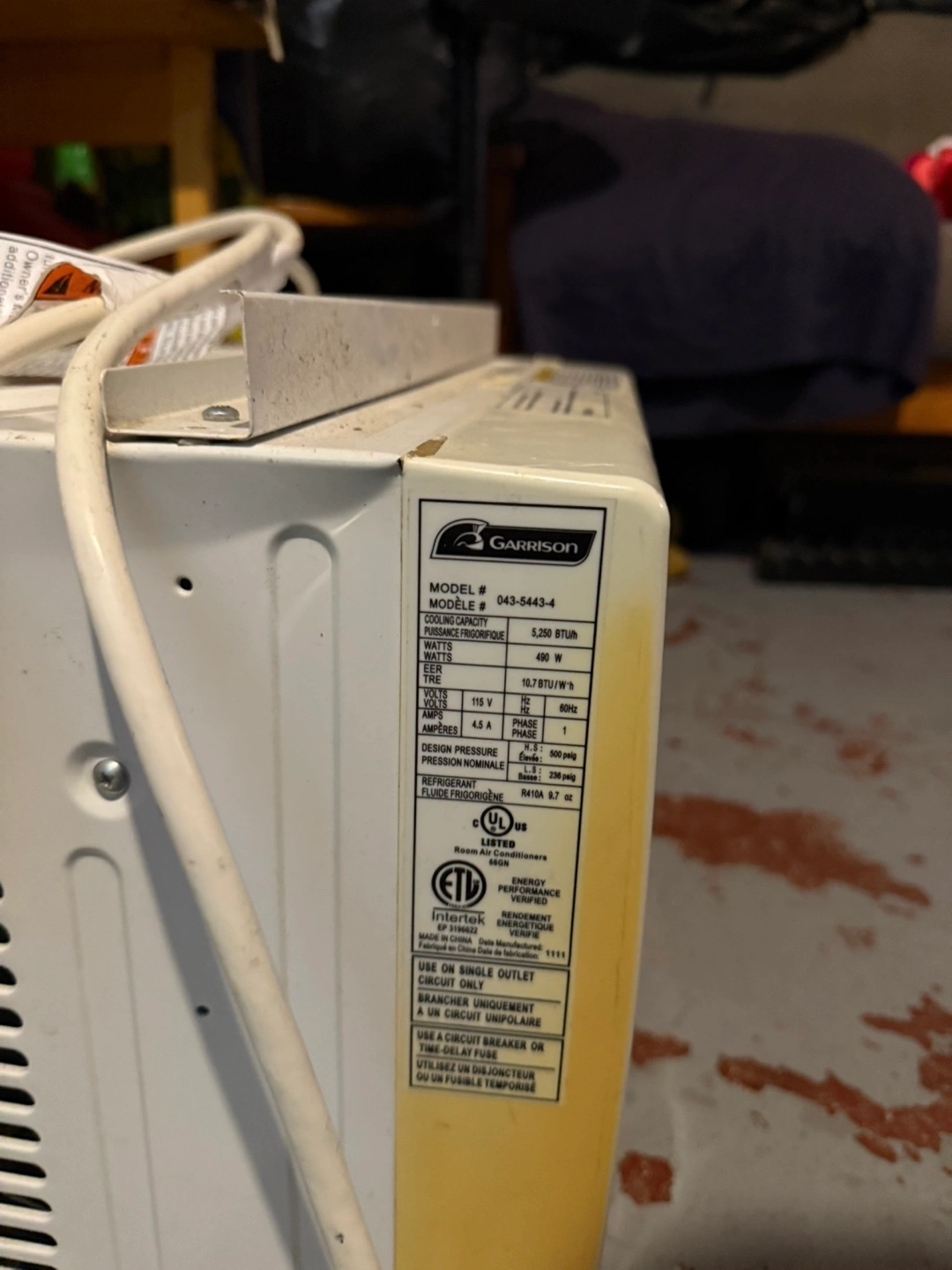 Selling a Garrison window air conditioner. It has a cooling capacity of 5,250 BTU. The model number is 043-5443-4. It's perfect for cooling a small room during the hot summer months!