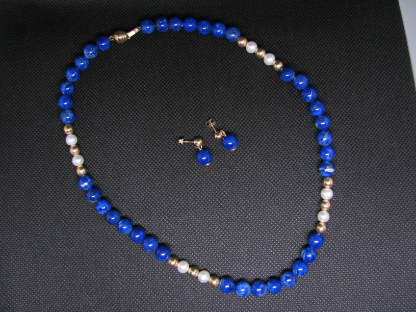 My mother is a retired jeweller, and she has me selling some of her pieces she no longer wears. The retail prices is $600. The $200 asking price is firm. The properties are as follows: 6-6.5mm lapis necklace - 16", with 14k gold and cultured pearl beads, plus matching earrings. I am willing to deliver.