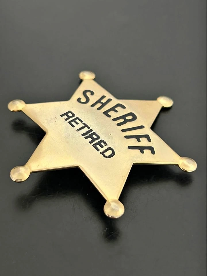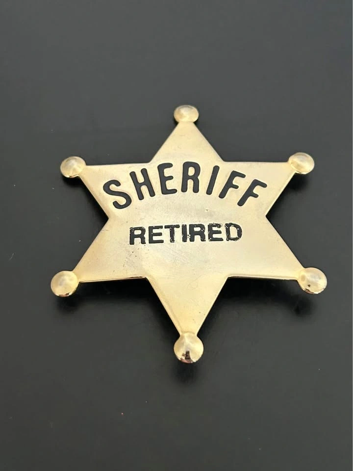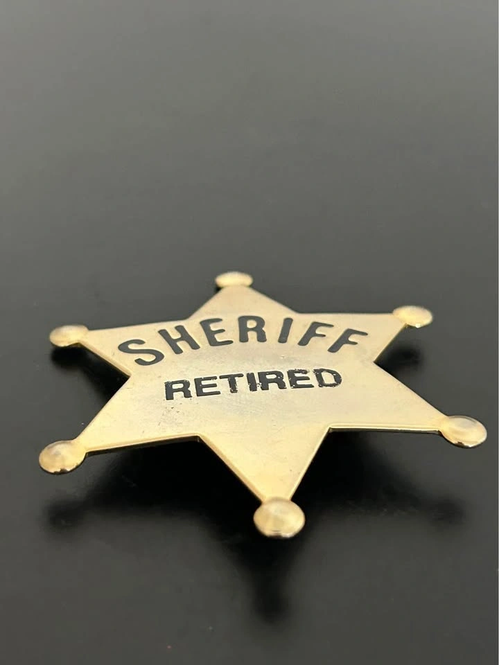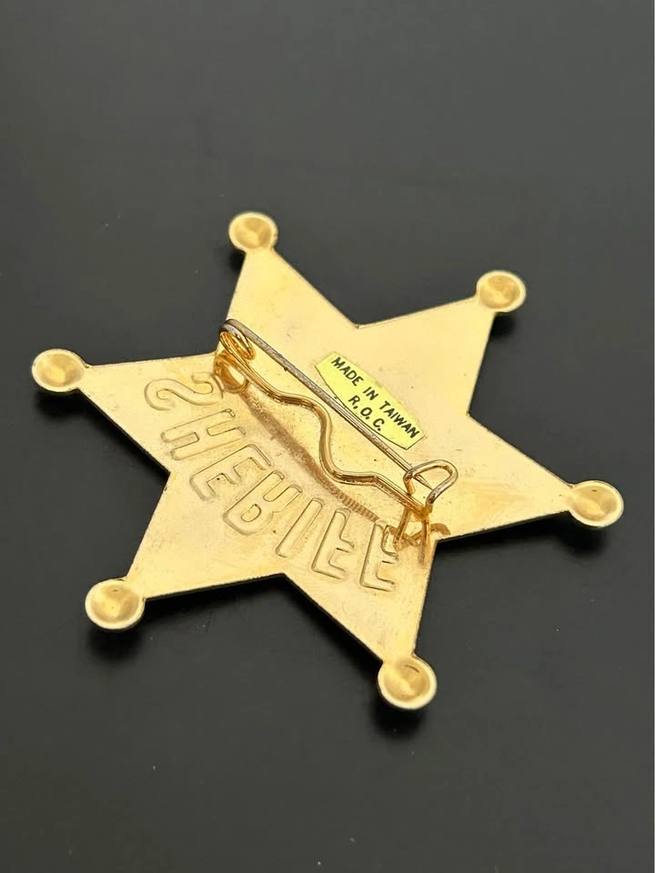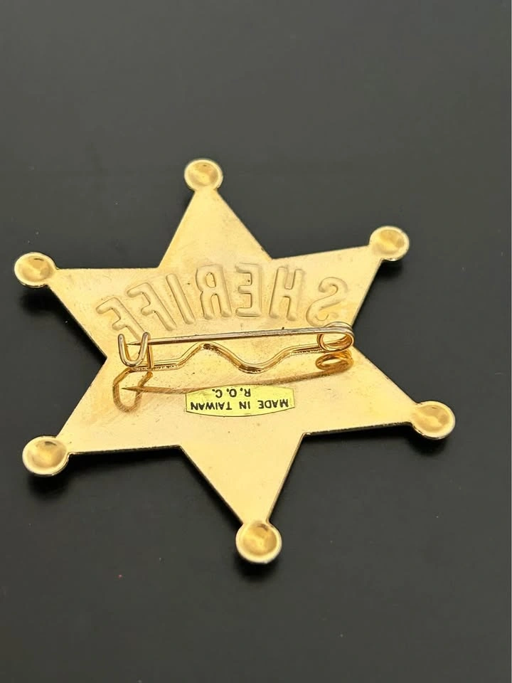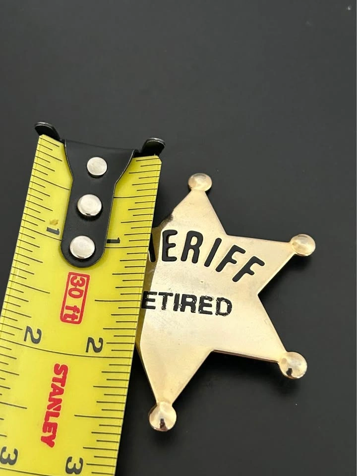 Vintage brass sheriff badge in the shape of a classic 6-point star with bold black lettering: SHERIFF RETIRED. Made in Taiwan, R.O.C. (marked on back). Sturdy clasp pin on reverse for wearing or display. Great collectible piece for Western memorabilia enthusiasts, novelty costume use, or as a gift for a retired officer. Pick up: Seton area, Calgary. See also my other lots. Open to your questions and suggestions. If necessary, I provide additional photos. These are not new things, so please look carefully at the photos and videos. Sizes are submitted on request and also using a tape measure in the photo.
