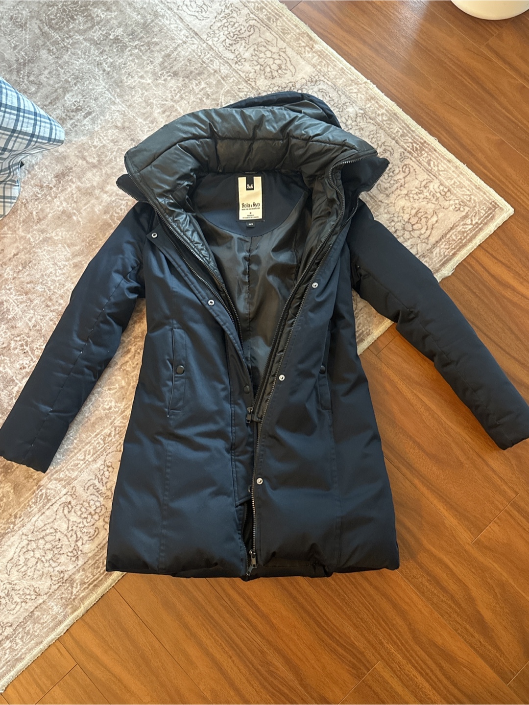 Selling a Soia & Kyo coat in size XS. It's a stylish black colour and proudly designed in Canada! Perfect for keeping warm during the colder months. Has removable hood and button pockets