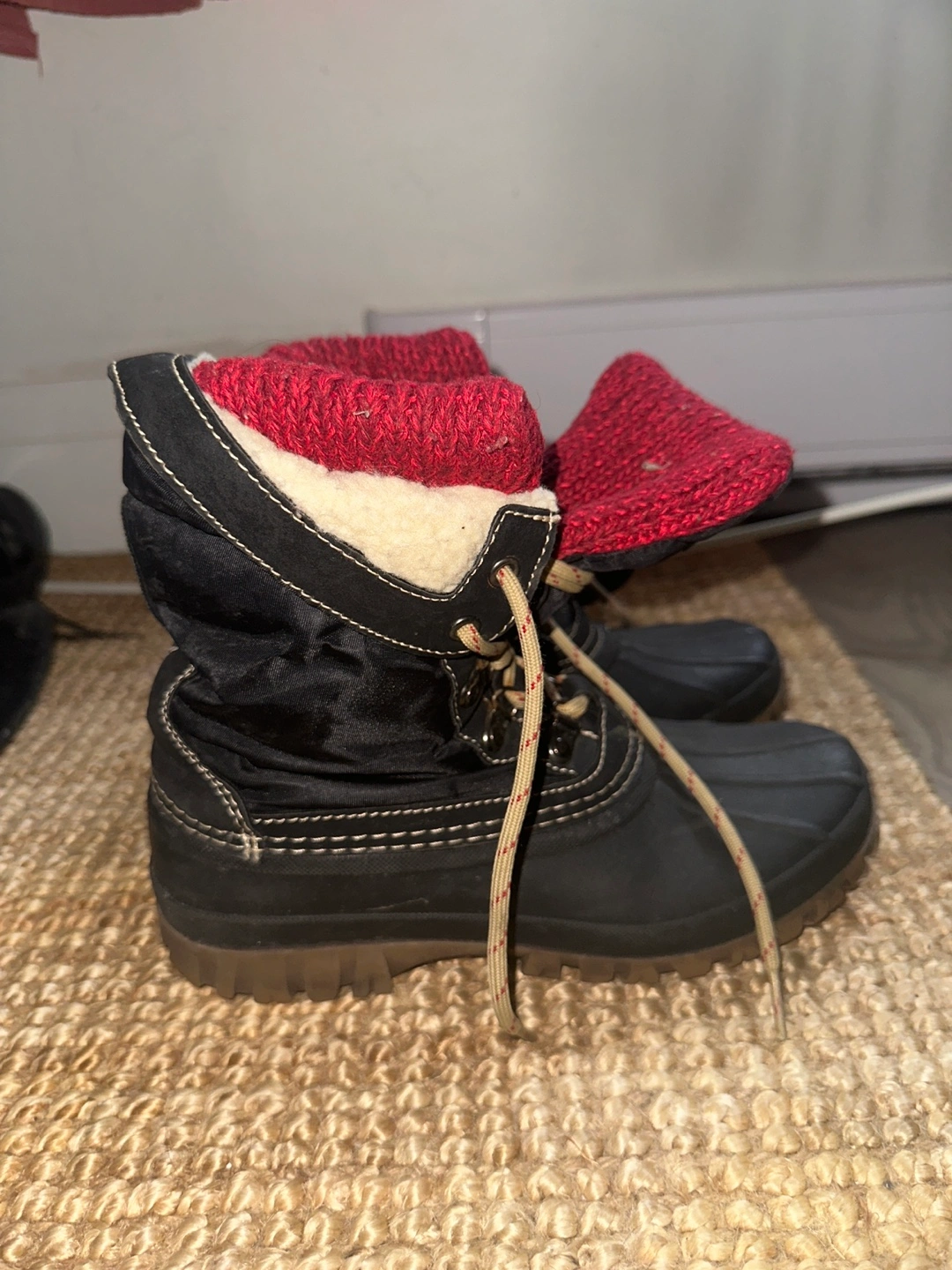 Selling a pair of Storm by Cougar winter boots! They're perfect for keeping your feet warm and dry during the cold Canadian winters. They have a lace-up closure and a cozy knit lining around the top.