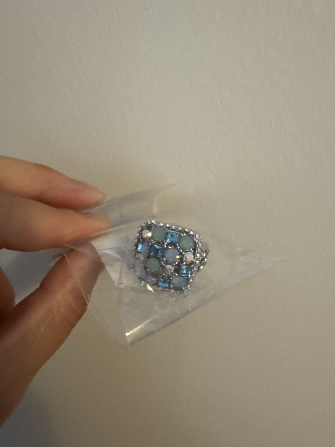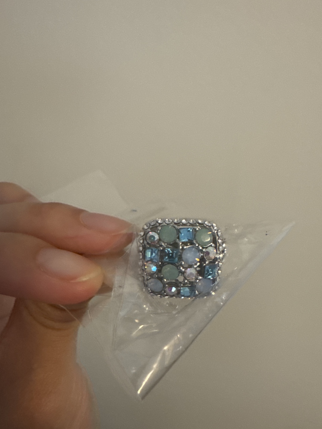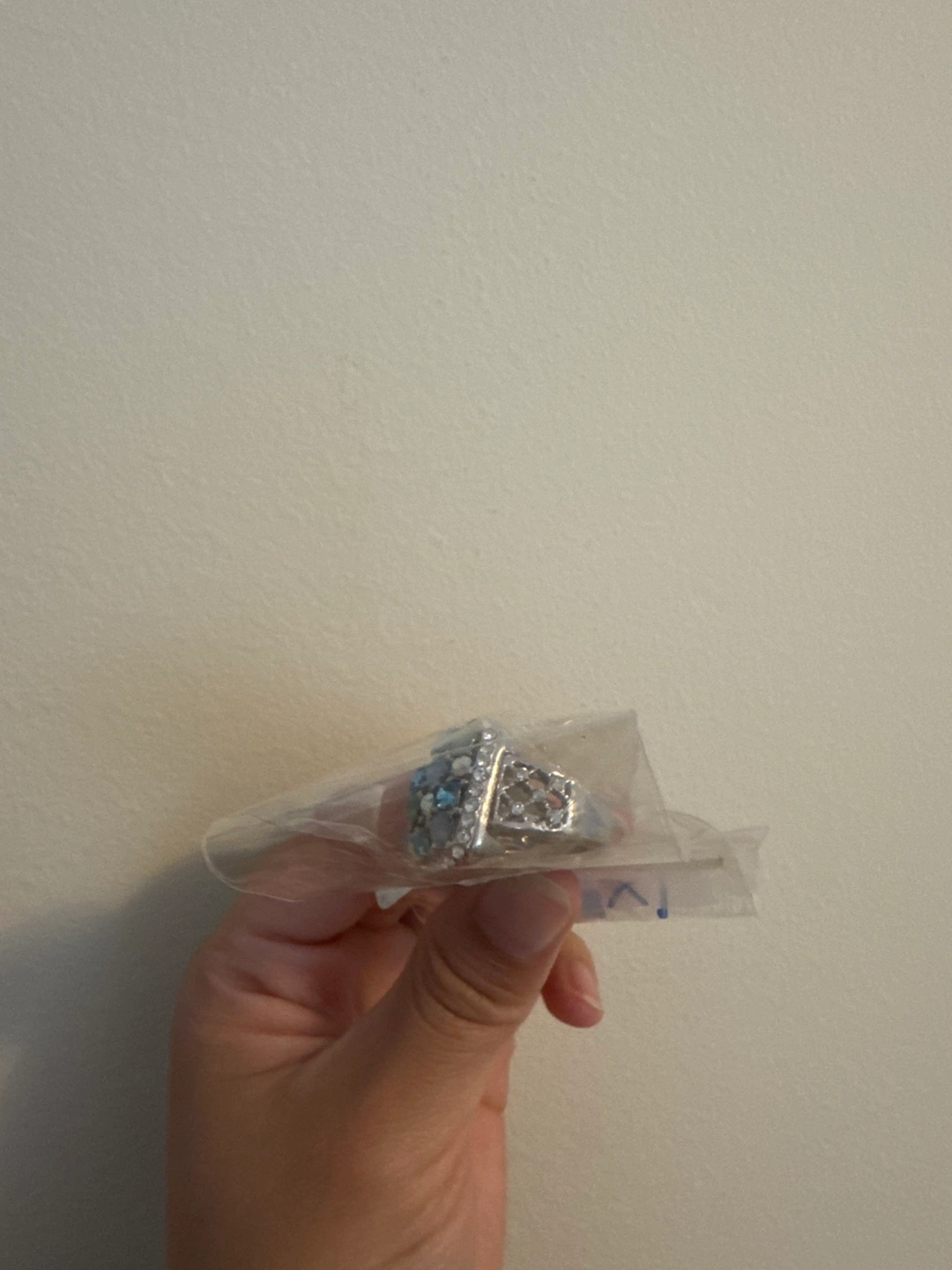 Features blue crystals and a cross pattern on the sides. Never worn before