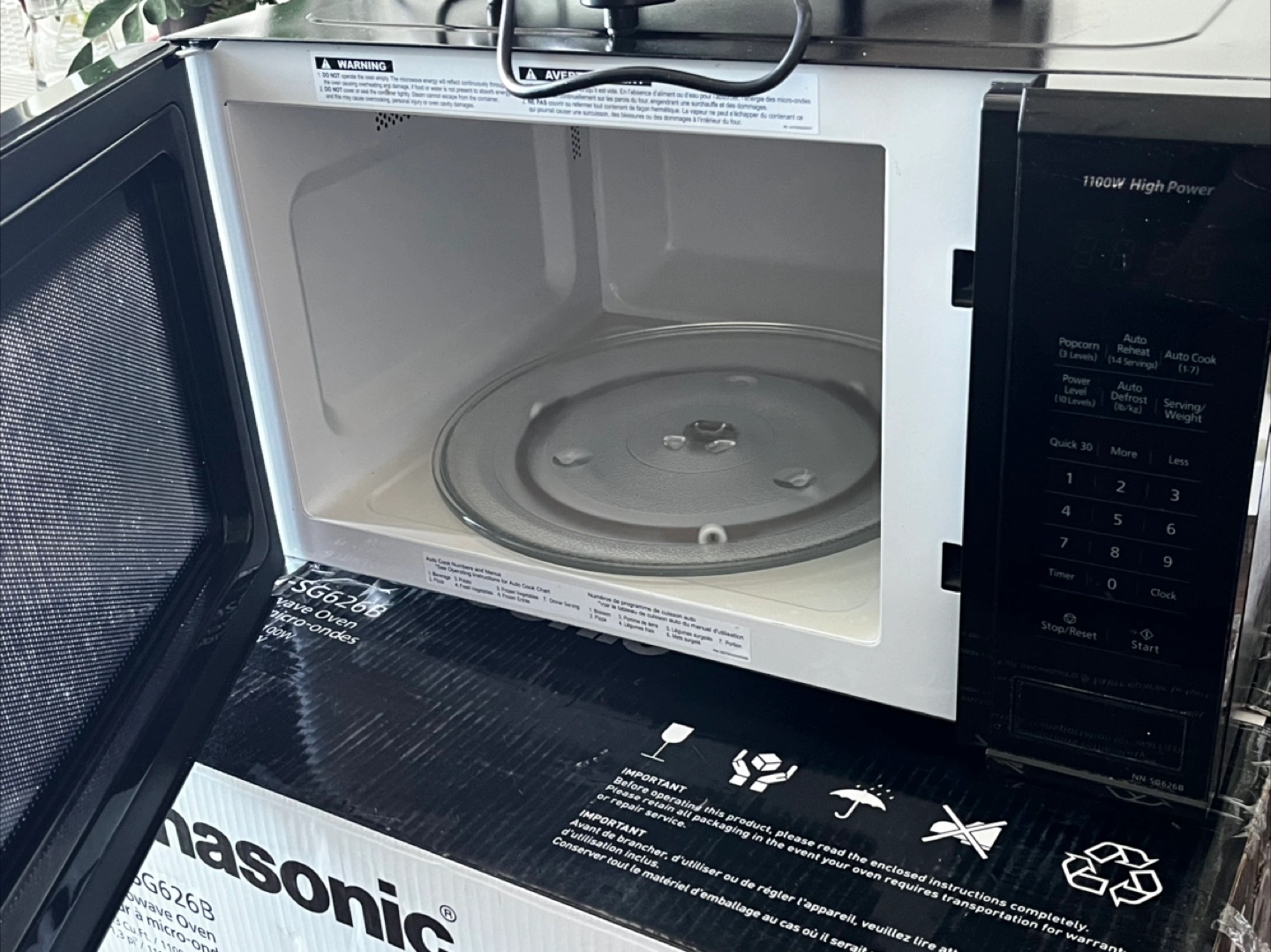 Selling a Panasonic NN-SG626B microwave oven that's in excellent condition! It comes with the original box. This microwave has 1100W High Power, auto reheat, auto cook and quick 30 feature. Great for any kitchen!