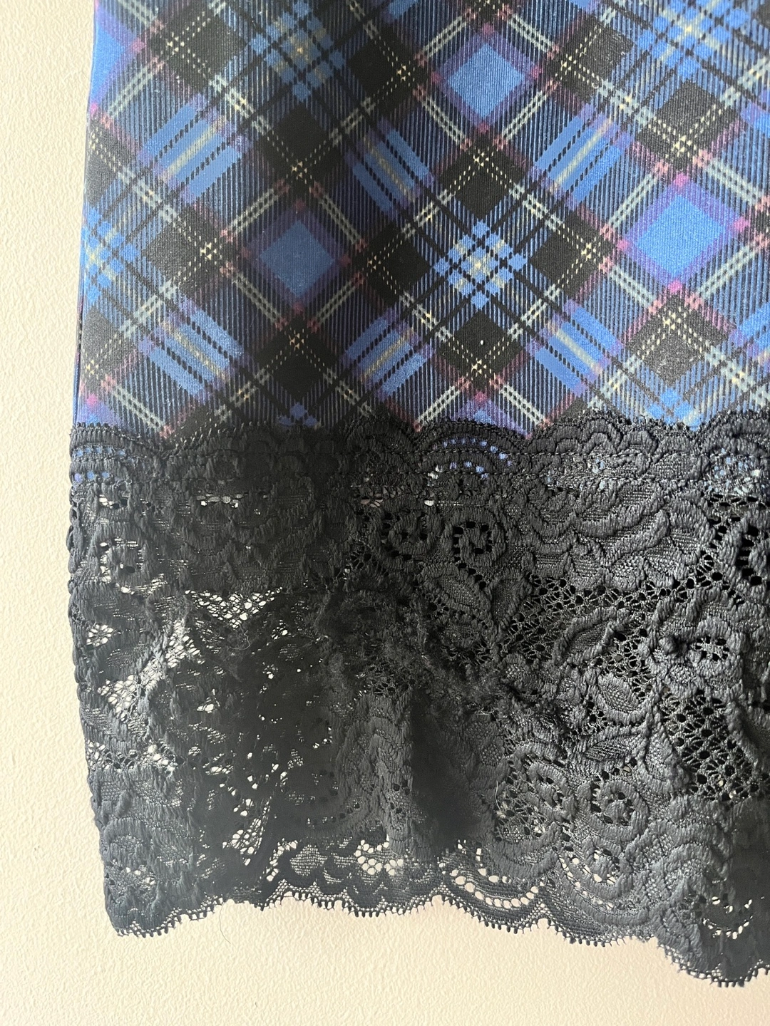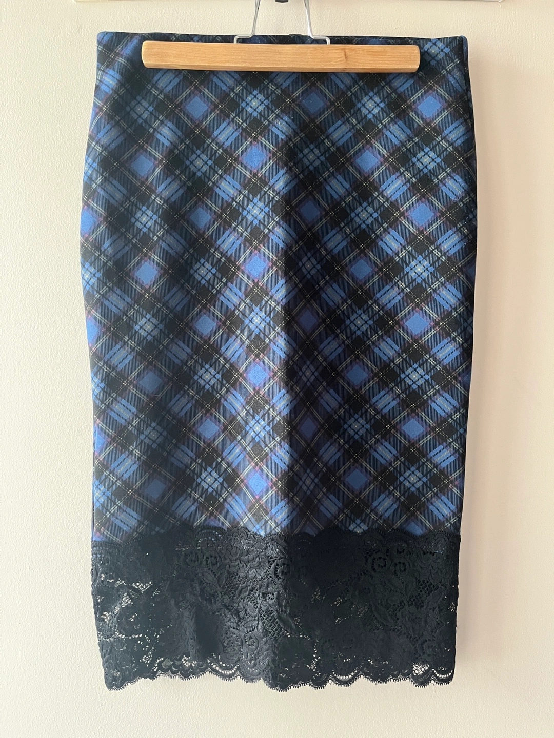 Blue Plaid and Lace Pencil Skirt - Size S