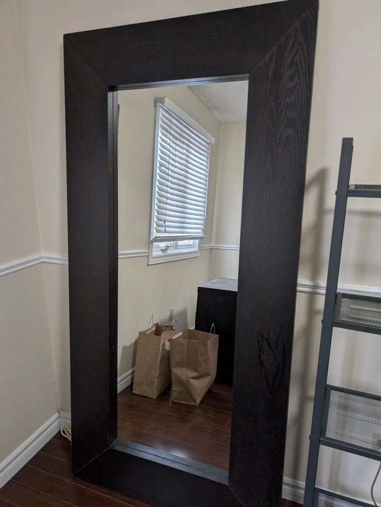 Good condition, some minor scratches on the frame, but the mirror itself is in perfect condition.