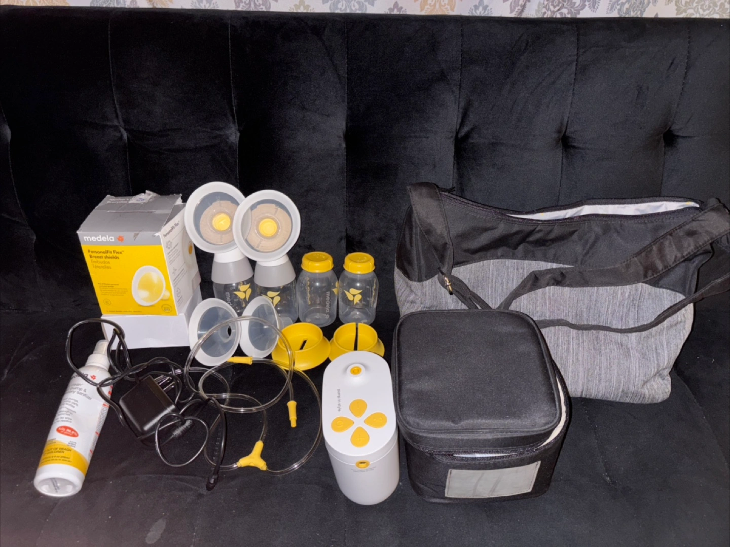 Comes with all accessories and even included Medela Quick Pump Spray and extra 24mm flanges and 27mm flanges that I have not used.