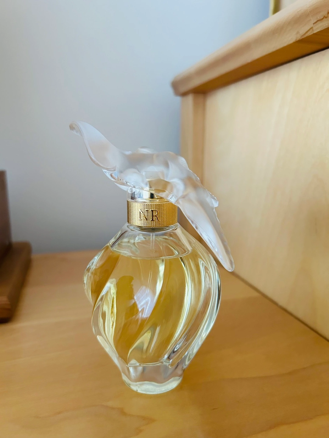 Selling a bottle of Nina Ricci L'Air du Temps perfume! The bottle is in great condition and would look lovely on any vanity or perfume collection. It's a classic scent that's both timeless and elegant, perfect for anyone who appreciates a touch of luxury