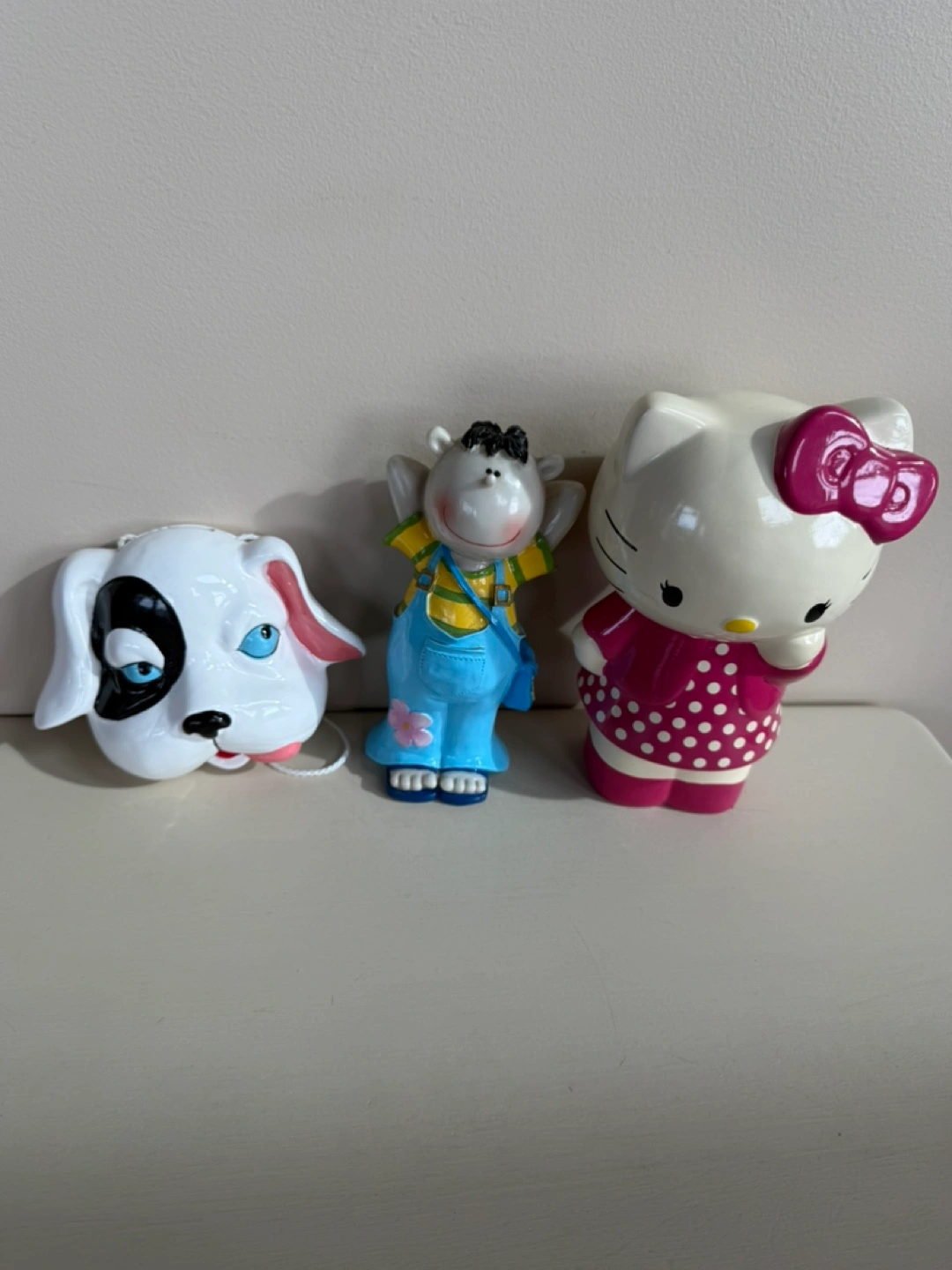 75Selling all 3 as a lot. Dog and Hello Kitty are ceramic. The other is resin. Please see photos for size & condition. Cash and pick up only in W. Hillhurst NW. Thanks for looking!