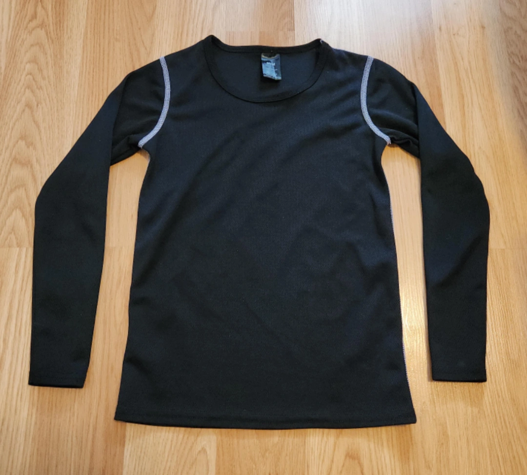 Selling a black long sleeve top. It's in great condition and perfect for layering or even wearing on its own! The material is soft and comfortable, making it ideal for everyday wear.