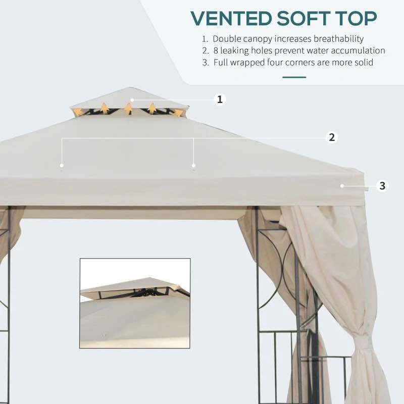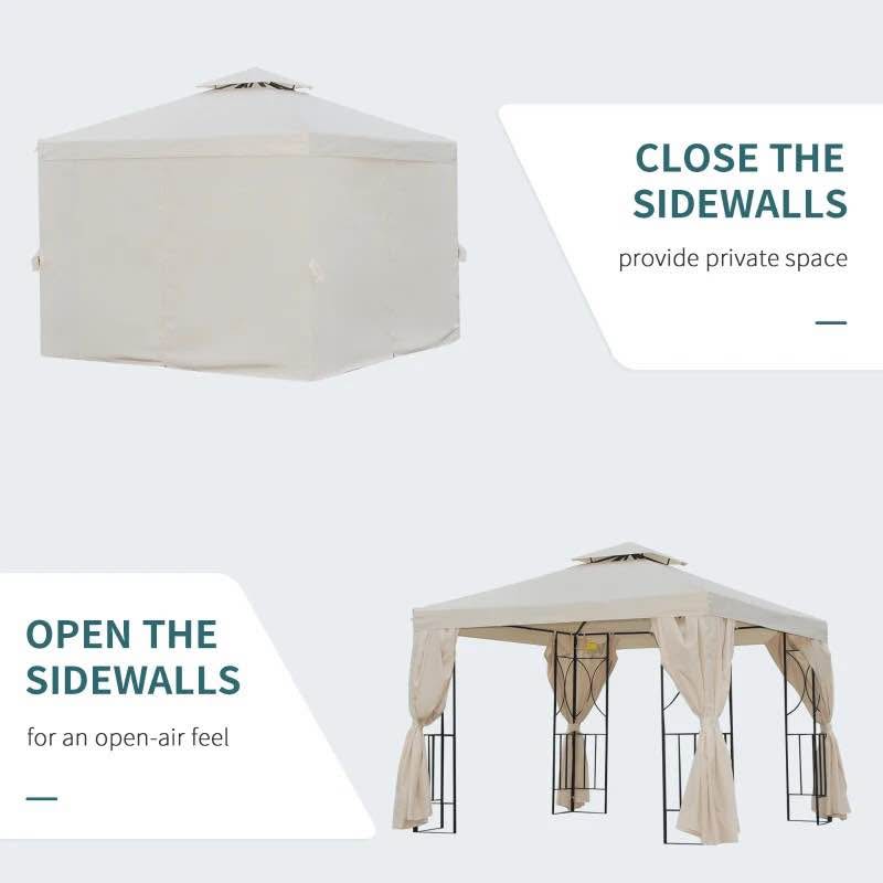 10' x 10' Patio Gazebo Outdoor, Canopy Shelter with Double-tier Roof, Pavilion Sidewalls for Garden Events, Cream White