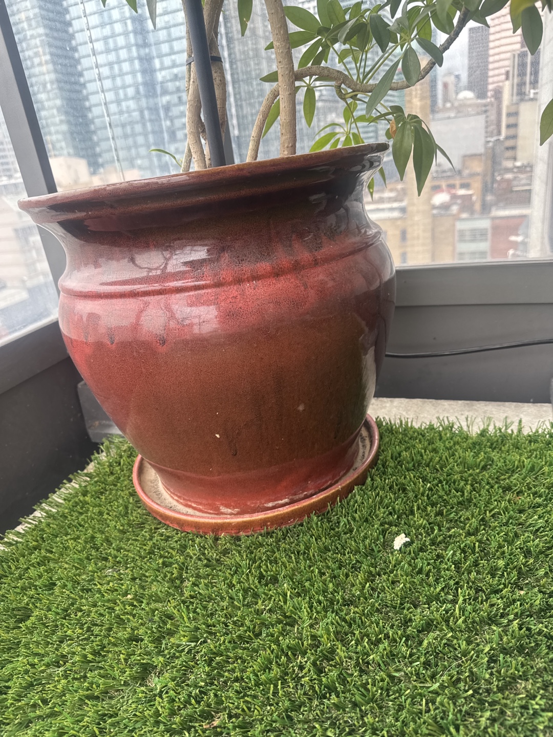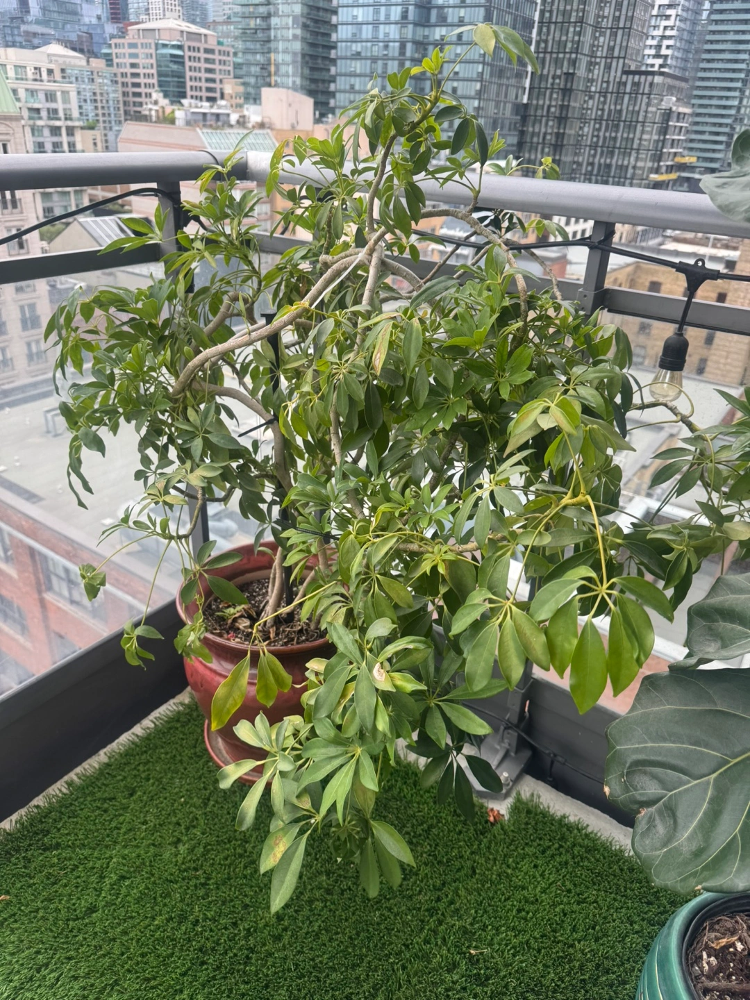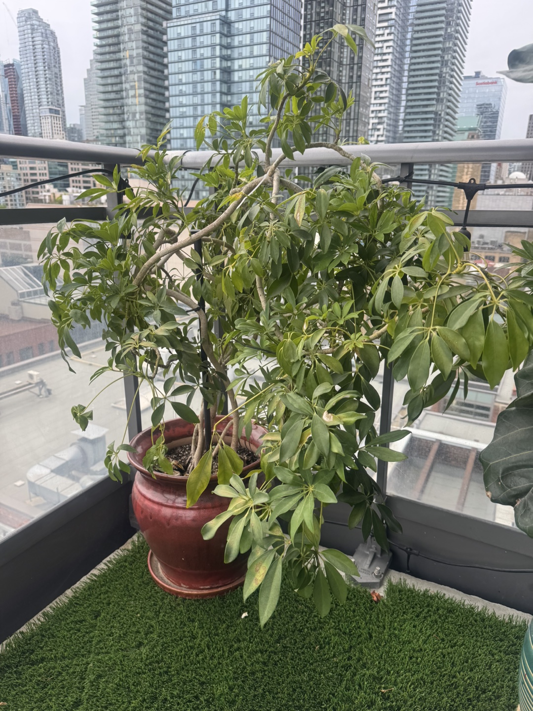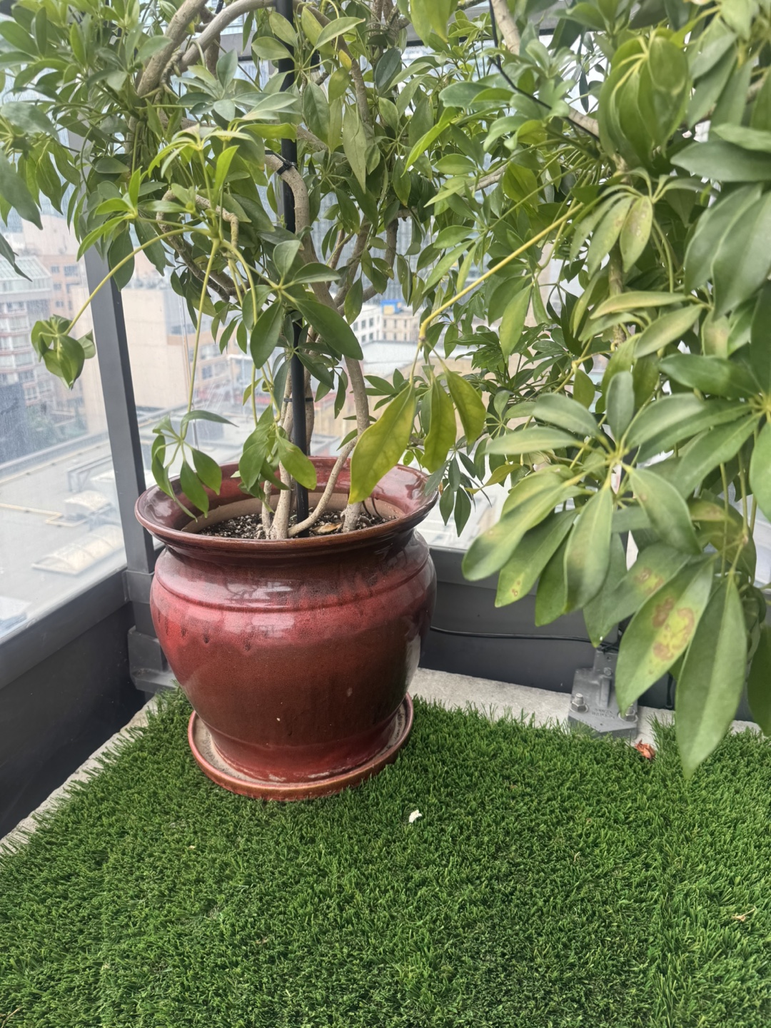 I'm selling a lovely potted Schefflera plant! It comes in a beautiful, glazed pot that will add a touch of elegance to any space. The plant is healthy and well-cared for, ready to bring some greenery into your home.