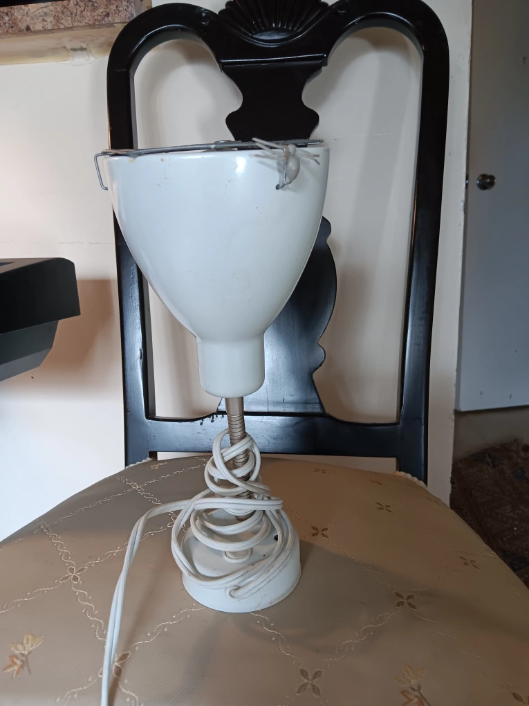 Selling a hanging white lamp. It's in good condition and ready to brighten up your space! It has a simple design that will fit in any room of your house
