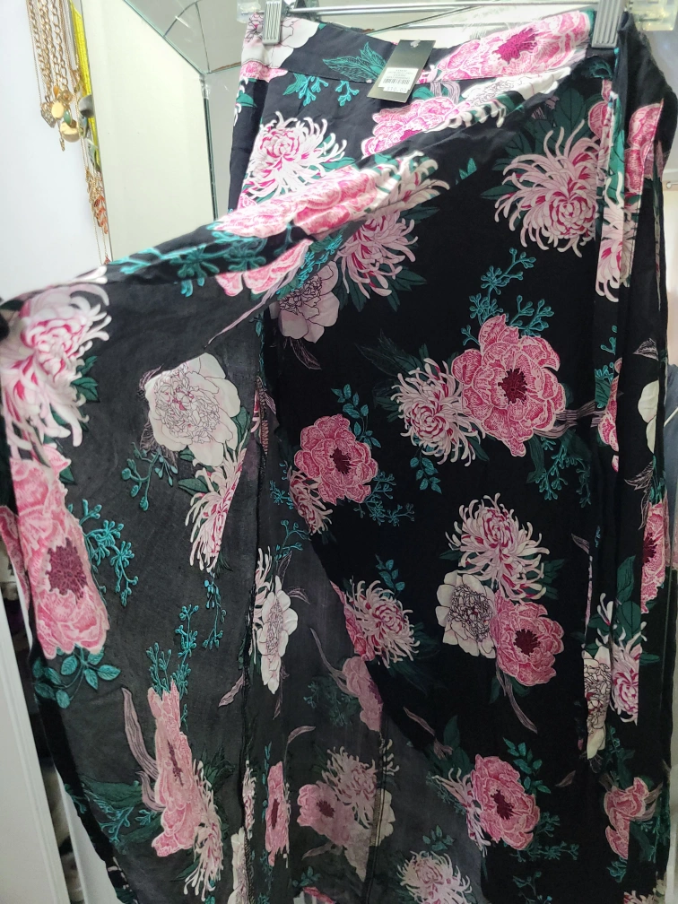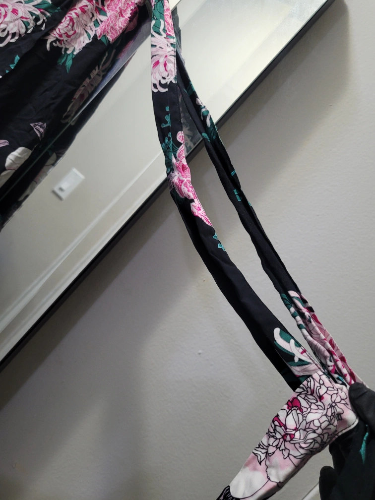 ๐It features a black background with black pink, green and white, floral patterns. Giving you plenty of matching options in your closet :)