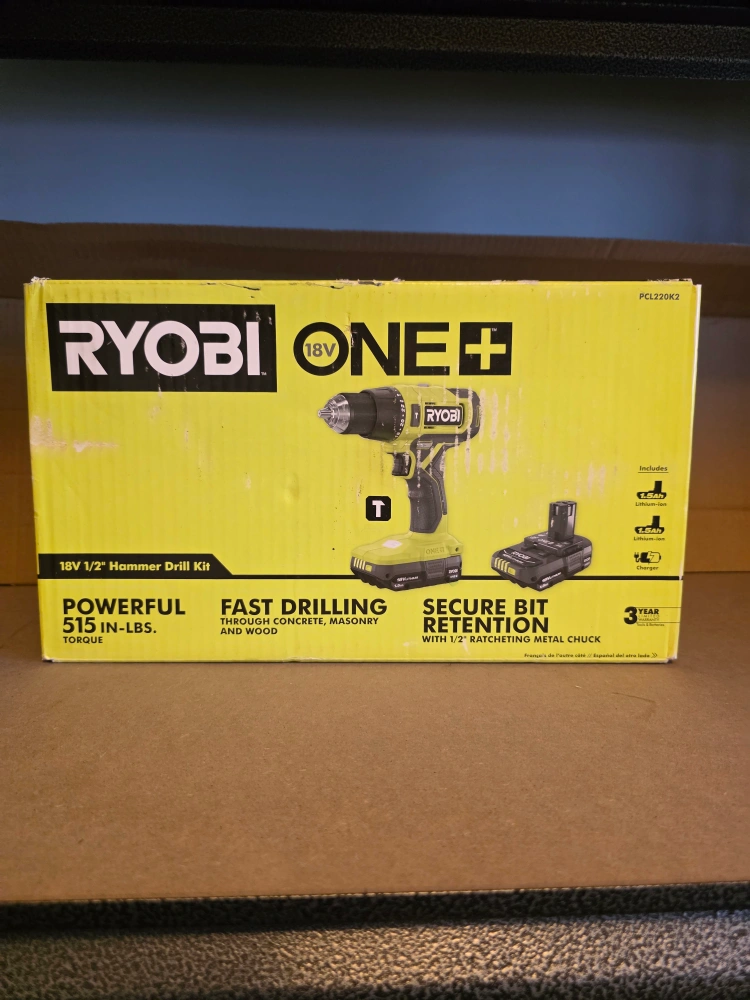 RYOBI 18V ONE+ 1/2" Hammer Drill & 1.5 Ah Batteries & Charger