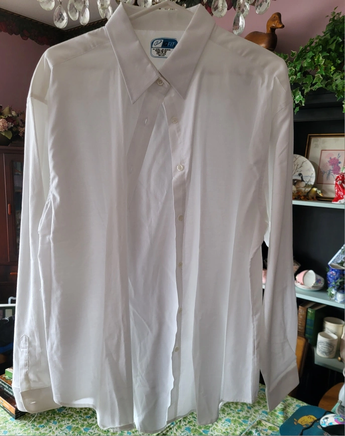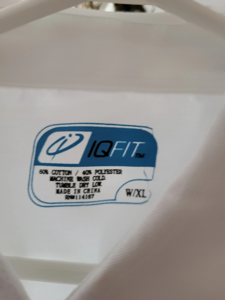 Selling 2 white dress shirts from IQ Fit in size W/XL. It's made of 60% cotton and 40% polyester. Easy to care for, just machine wash cold and tumble dry low. Brand new, never worn. Smoke free, pet free home.