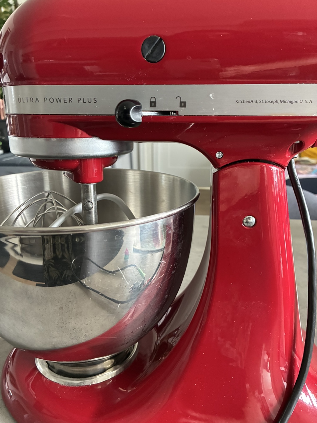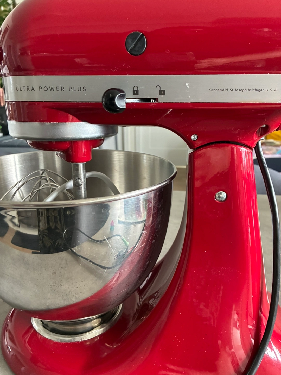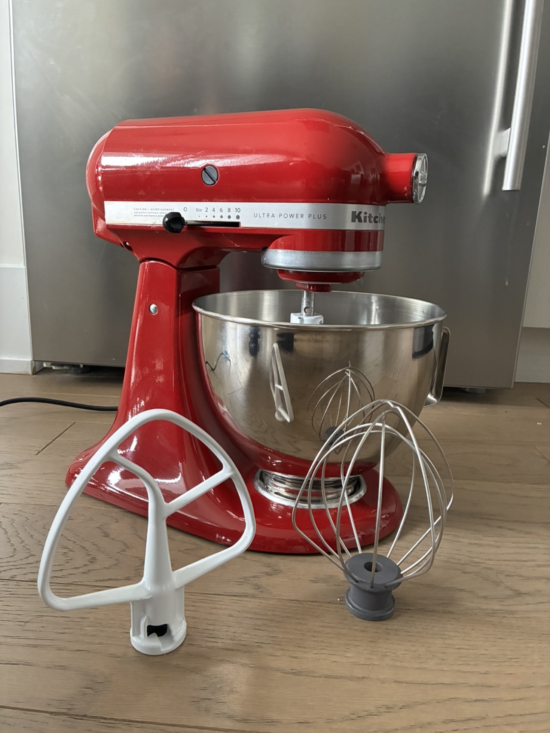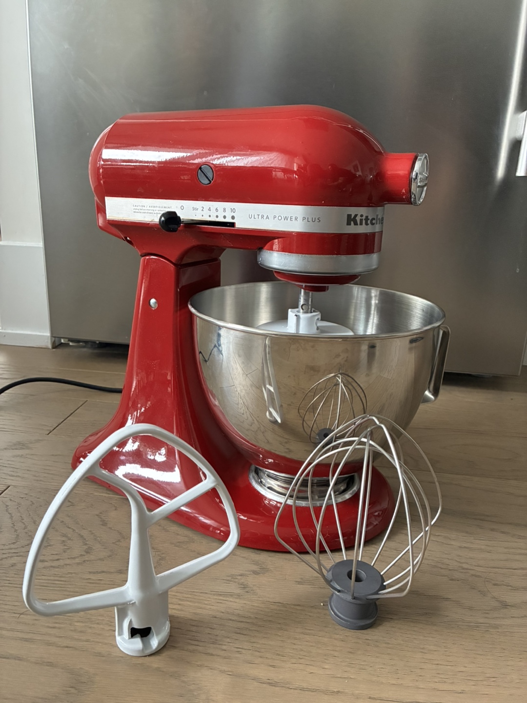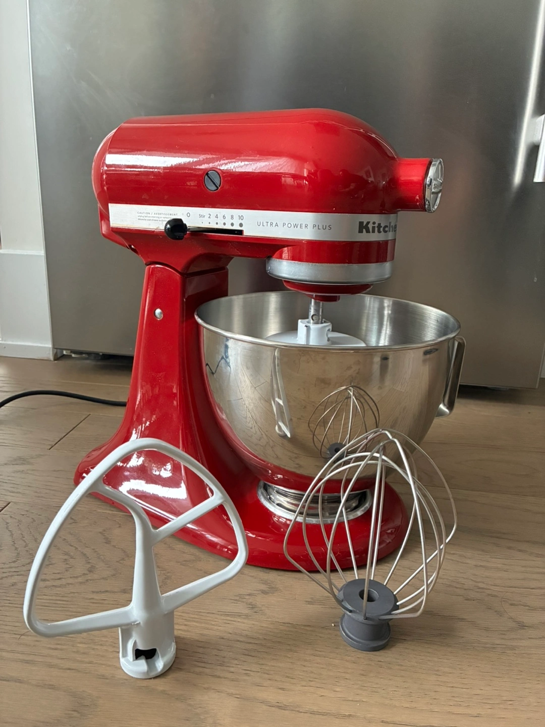 Selling a barely used KitchenAid Ultra Power Plus stand mixer in red! It comes with the standard attachments: a whisk, a dough hook, and a flat beater. Perfect for all your baking needs!