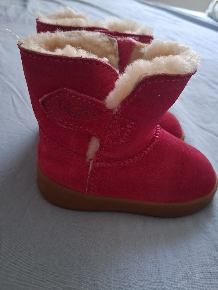 These adorable UGG boots are perfect for your little one! They are a vibrant pink colour and in great condition. The size is a toddler 4 (UK size). They feature a cozy, plush lining to keep those little feet warm and comfy!