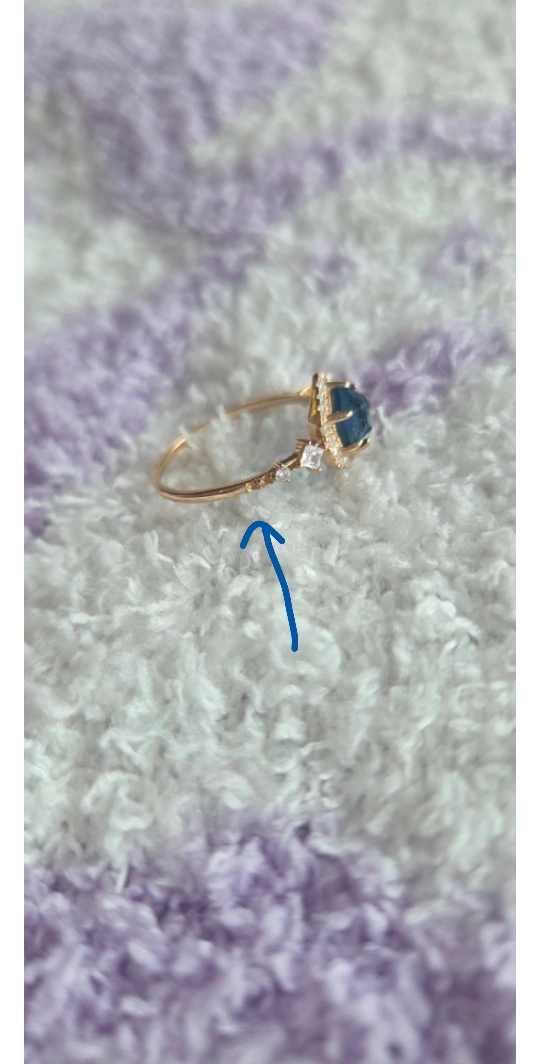 Beautiful Alexandrite Ring, gold plated and stamped 925 sterling silver in size 7. Sadly 2 tiny stones fell out on the band (see picture), but it is barely noticeable and the ring still looks beautiful worn.