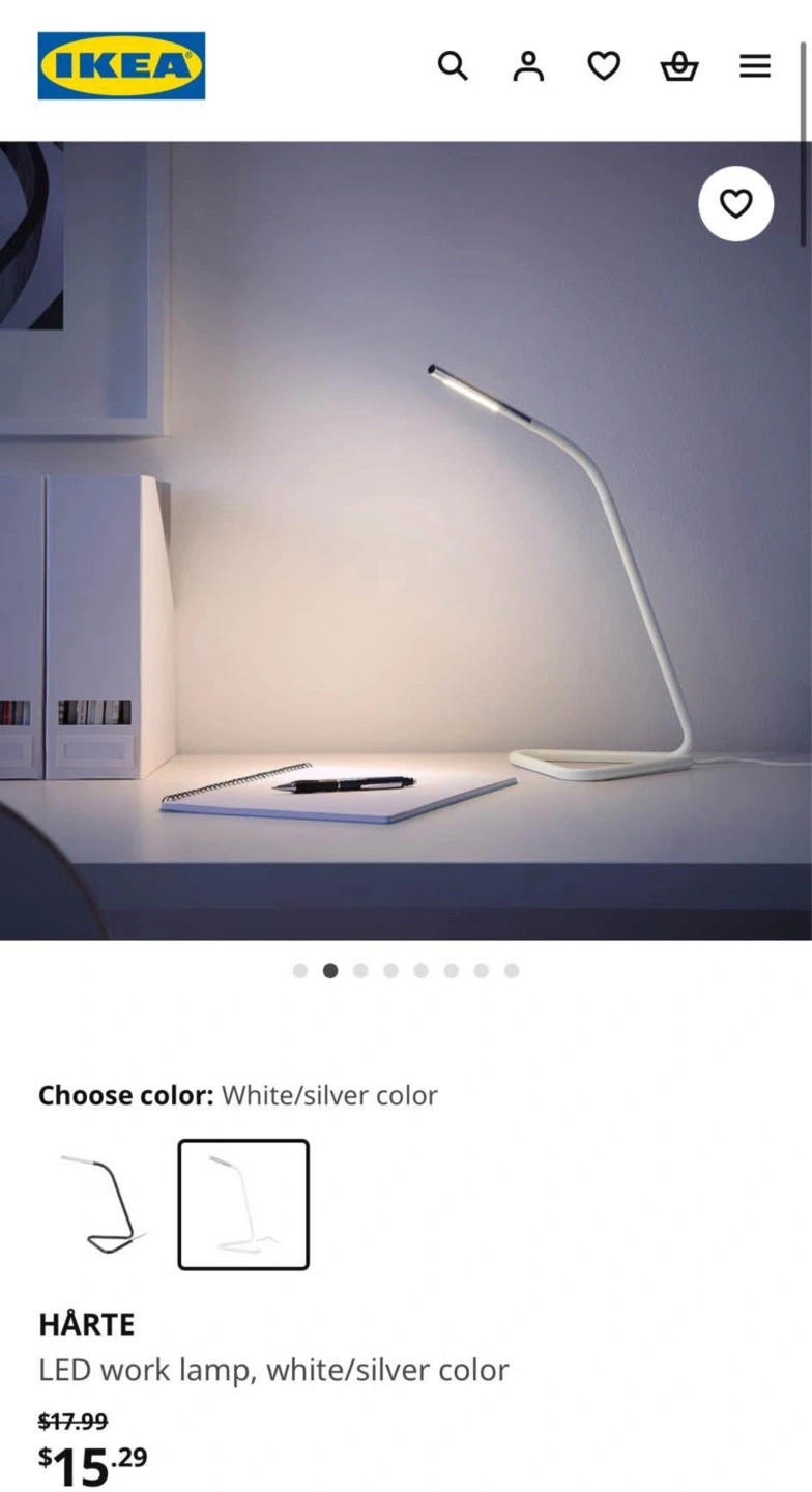 IKEA HÅRTE LED work lamp in white/silver colour.