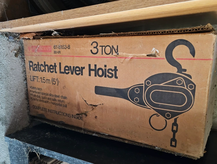 Selling a brand new Princess Auto Powerfist 3 TON Ratchet Lever Hoist. It has a lift of 1.5m (5'). - Safety latch - Hardened special alloy steel chain - Push-pull, quick and safe return - Use for vertical lift-horizontal pull - Complete instructions inside Box is included