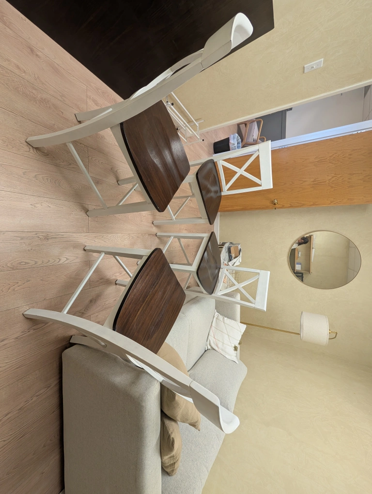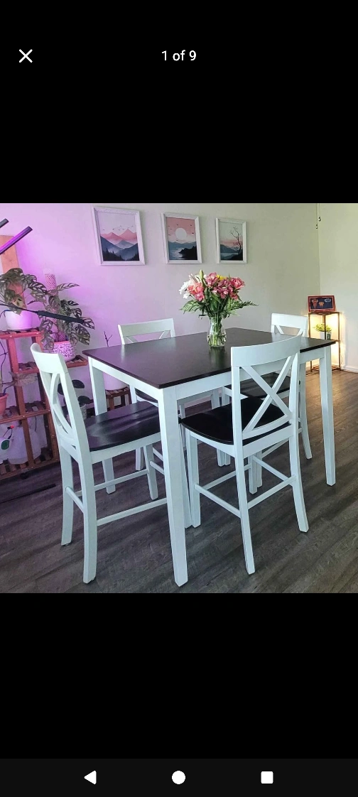 One of the chairs leg has some damage that was repaired and masked as well. (See pictures for details)