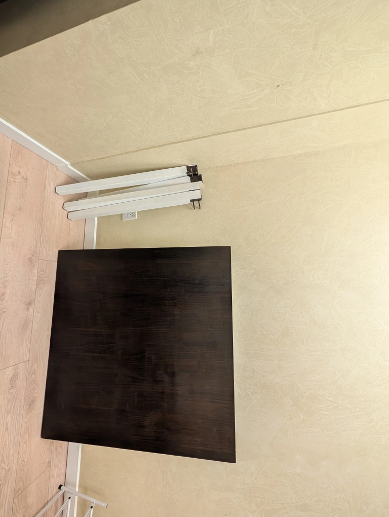 Hand painted legs, so it's not perfect (pics are accurate). It has a few masked scratches on top/side of the table.
