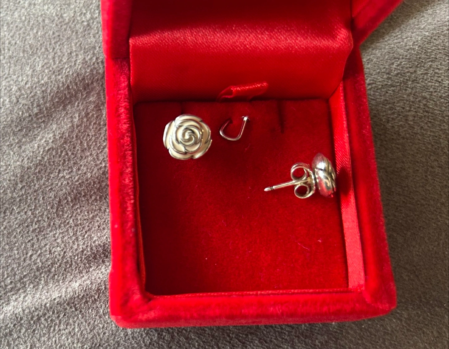These are a pair of Pandora rose stud earrings. They are perfect for gifting or for yourself. The earrings are 925 silver and shaped like roses. They are in good condition.
