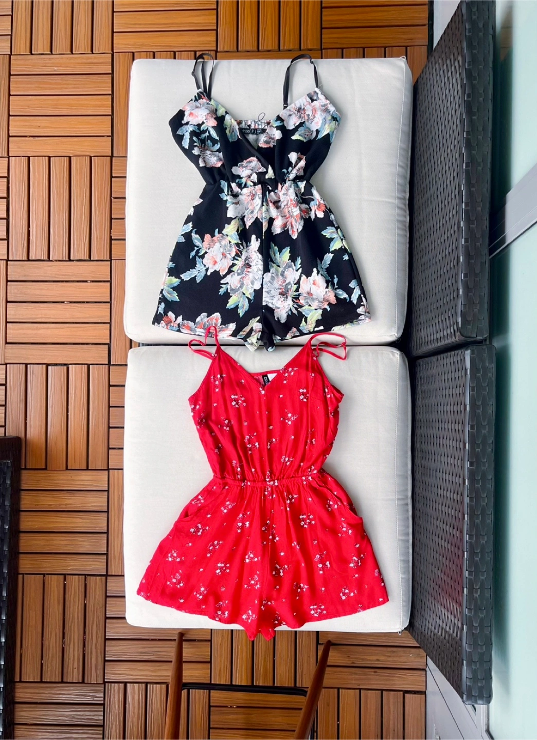 Both are like new and size S -Black floral romper from Boohoo -Red floral romper from H&M $15 each $20 for both Pick up in downtown Check out my other listings, willing to bundle items as well.