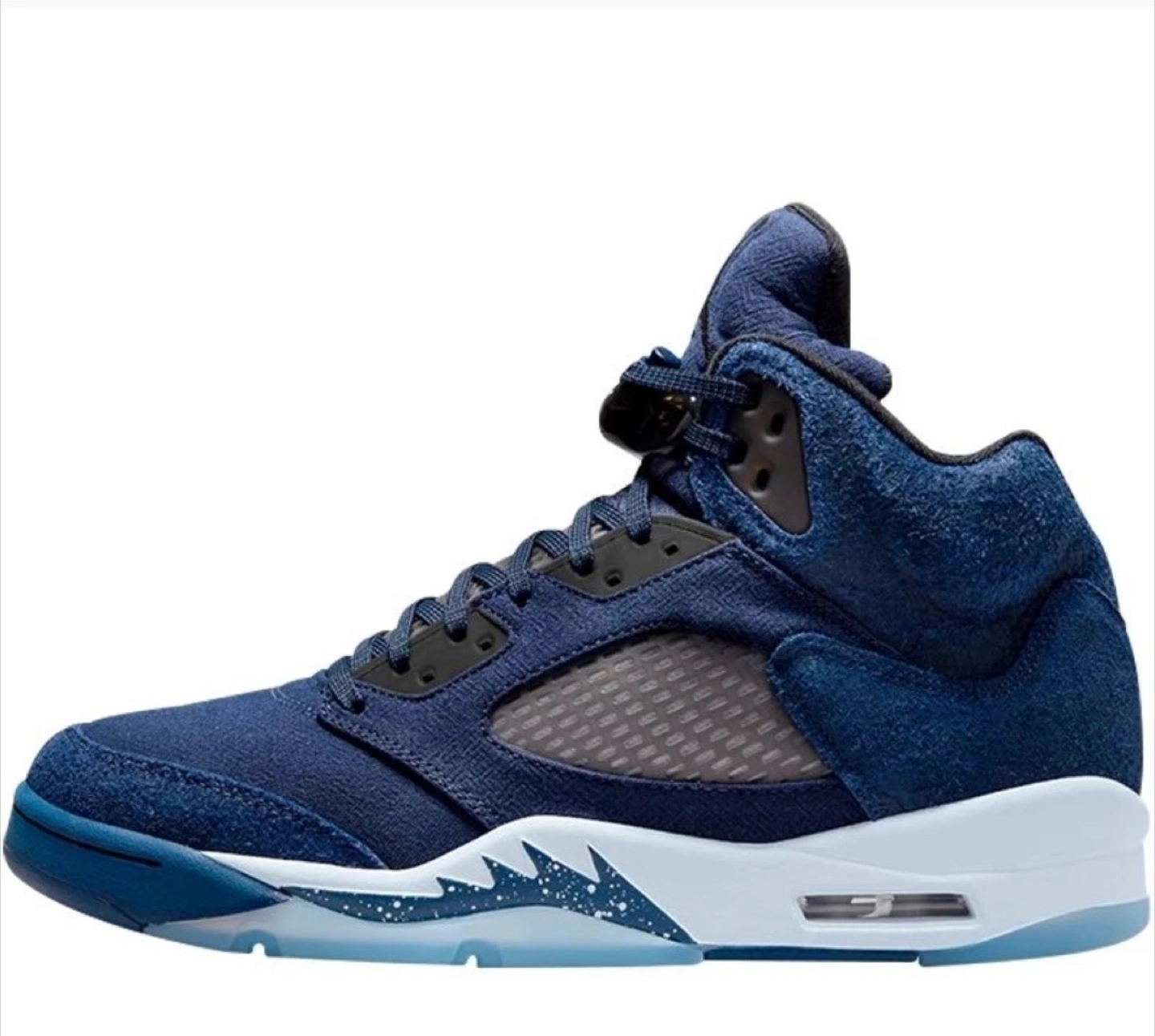 Selling a pair of Jordan 5 Retro in the Indigo Haze colourway. These sneakers feature a unique blend of textures and a stylish design. Great for adding a pop of colour to your wardrobe!